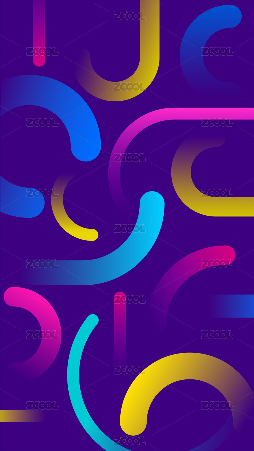 渐变弯曲的彩色条状混合图形抽象风格背景
