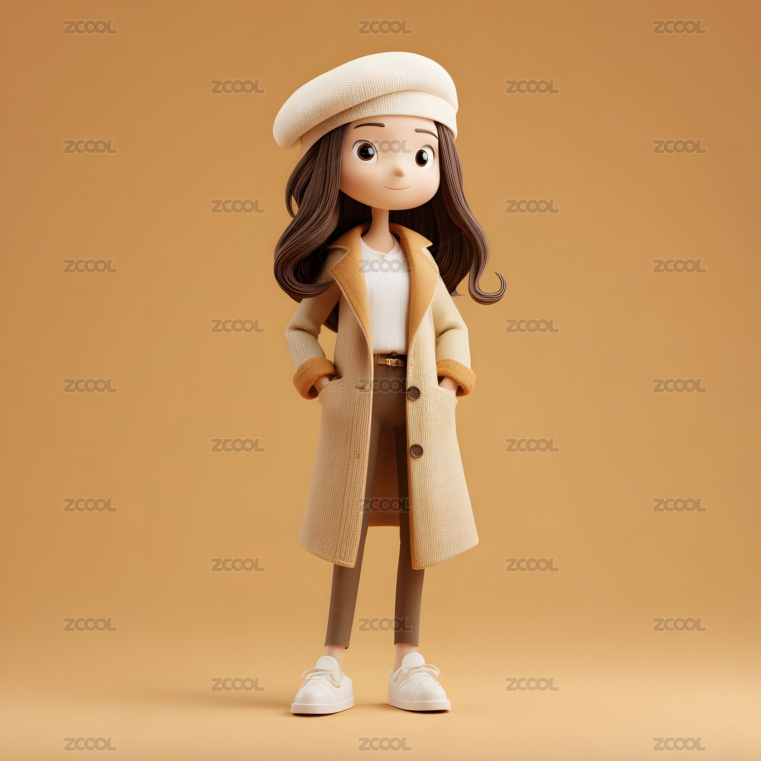 3D渲染可爱女孩穿着春天衣服戴着帽子插图