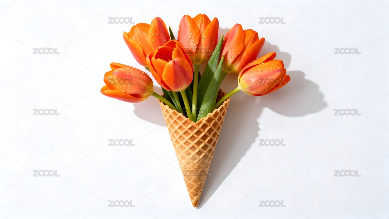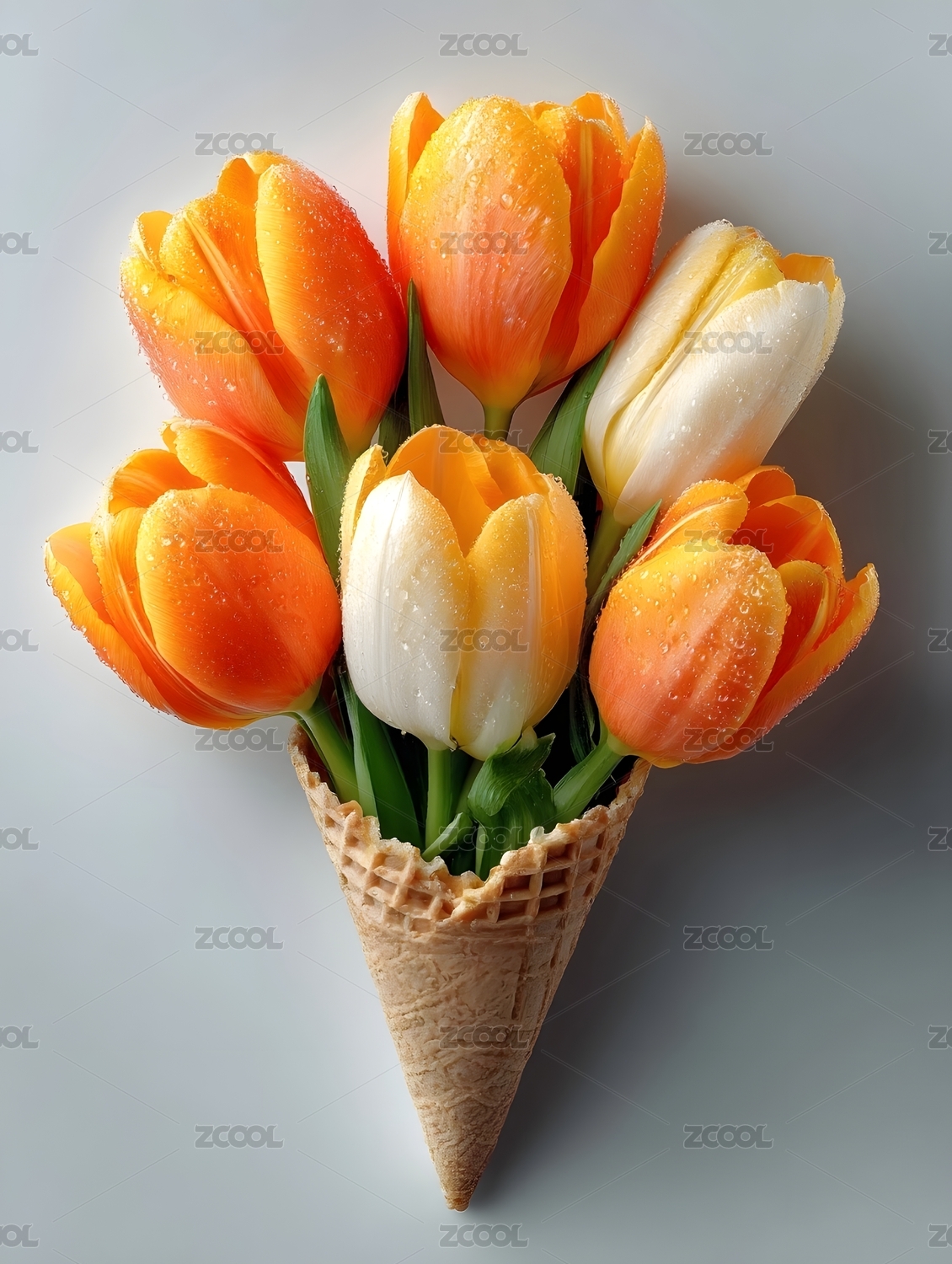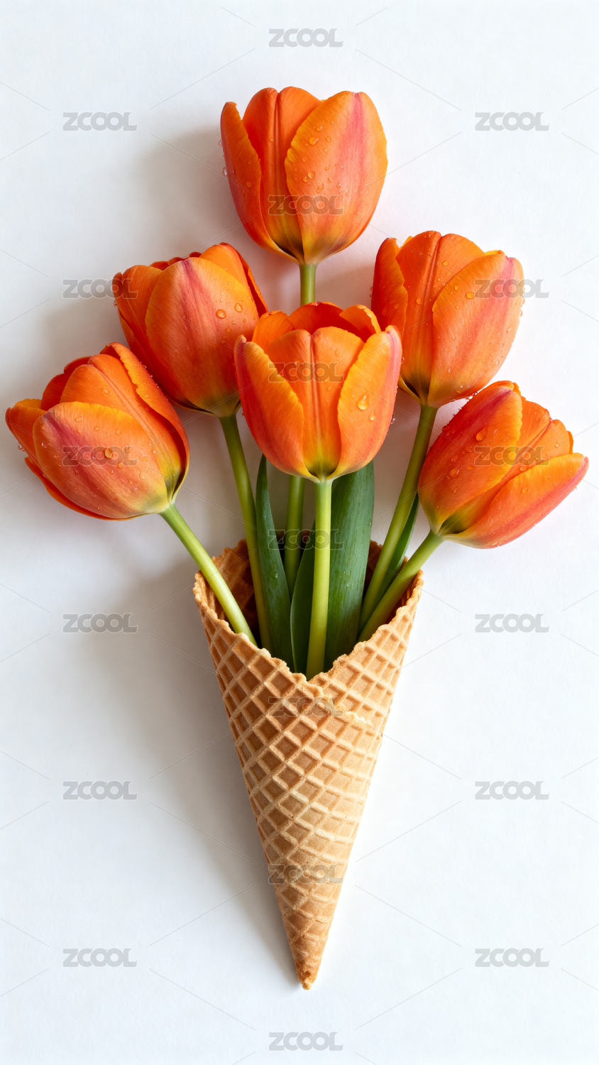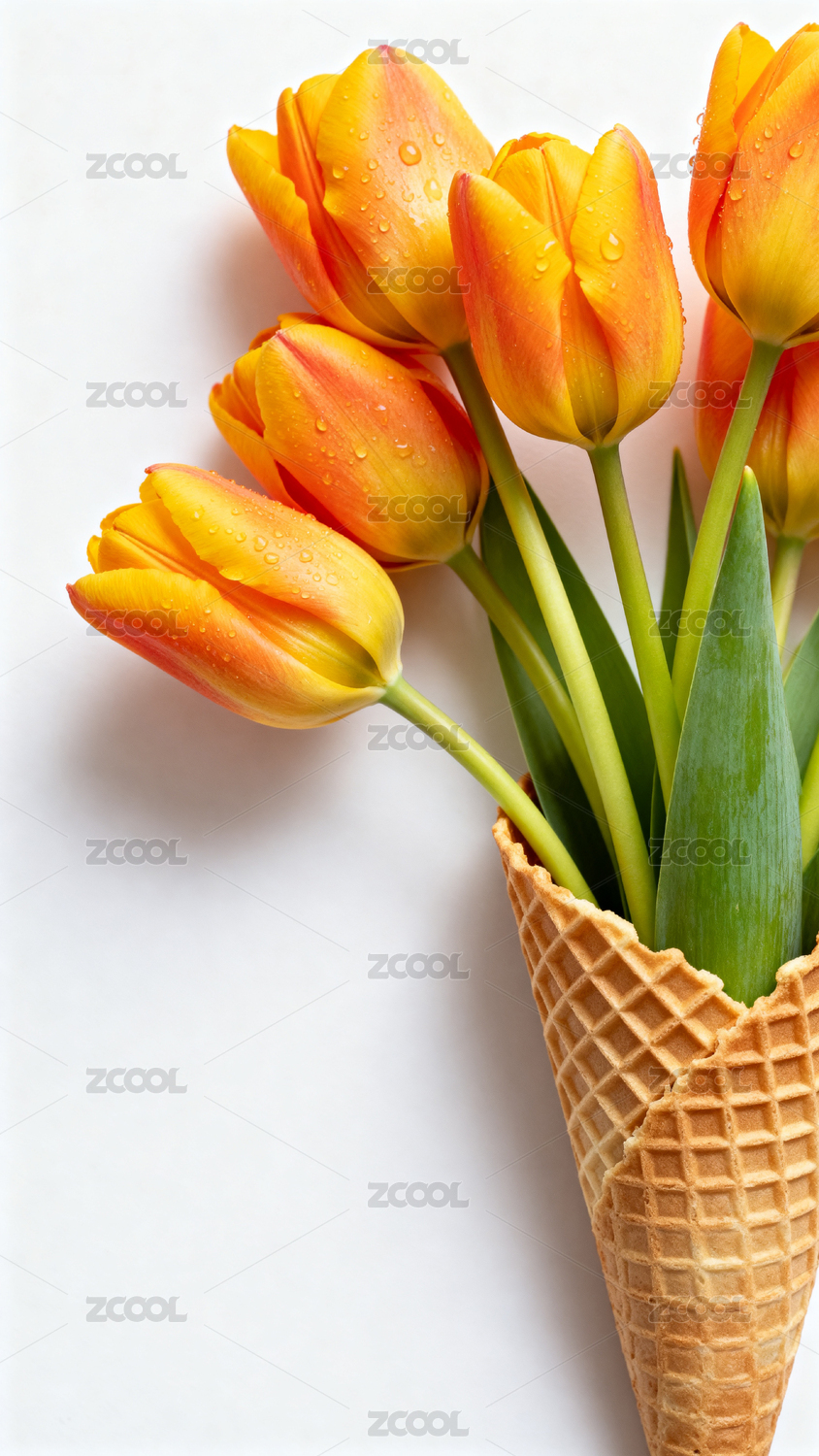 橙色郁金香插在华夫筒中