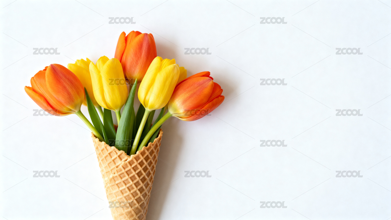 郁金香插在华夫筒里创意摆拍