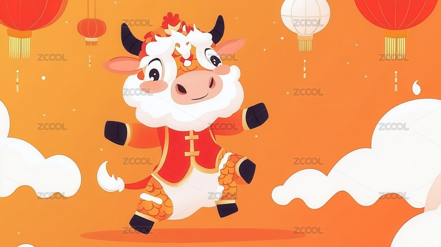 卡通牛喜庆风新春场景