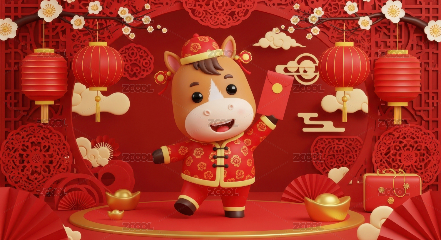 中国风红色祥云骏马