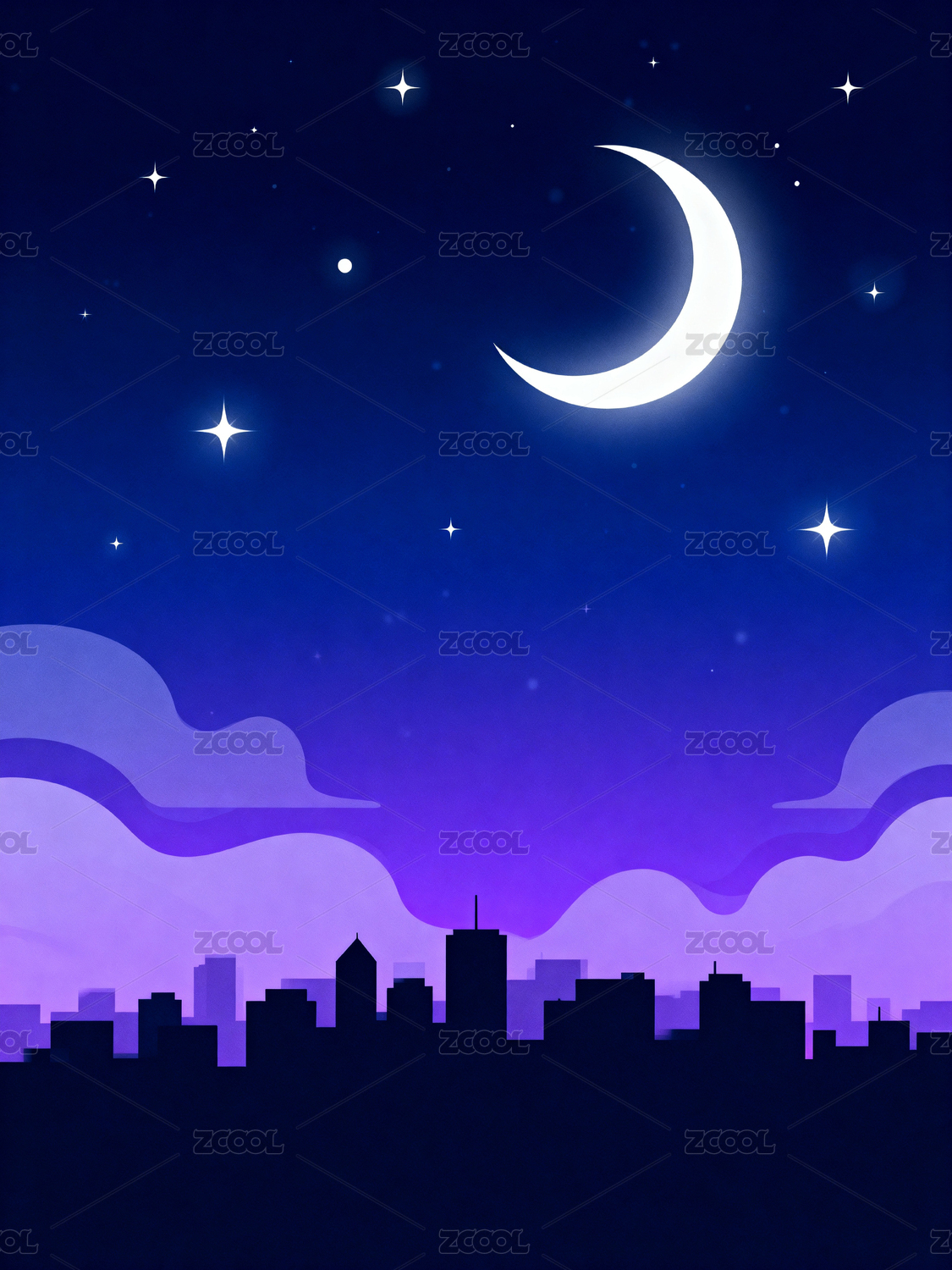 城市夜空下的建筑剪影
