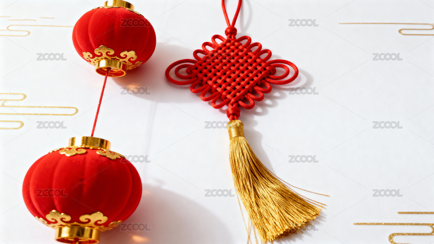 传统吉祥结与红色灯笼