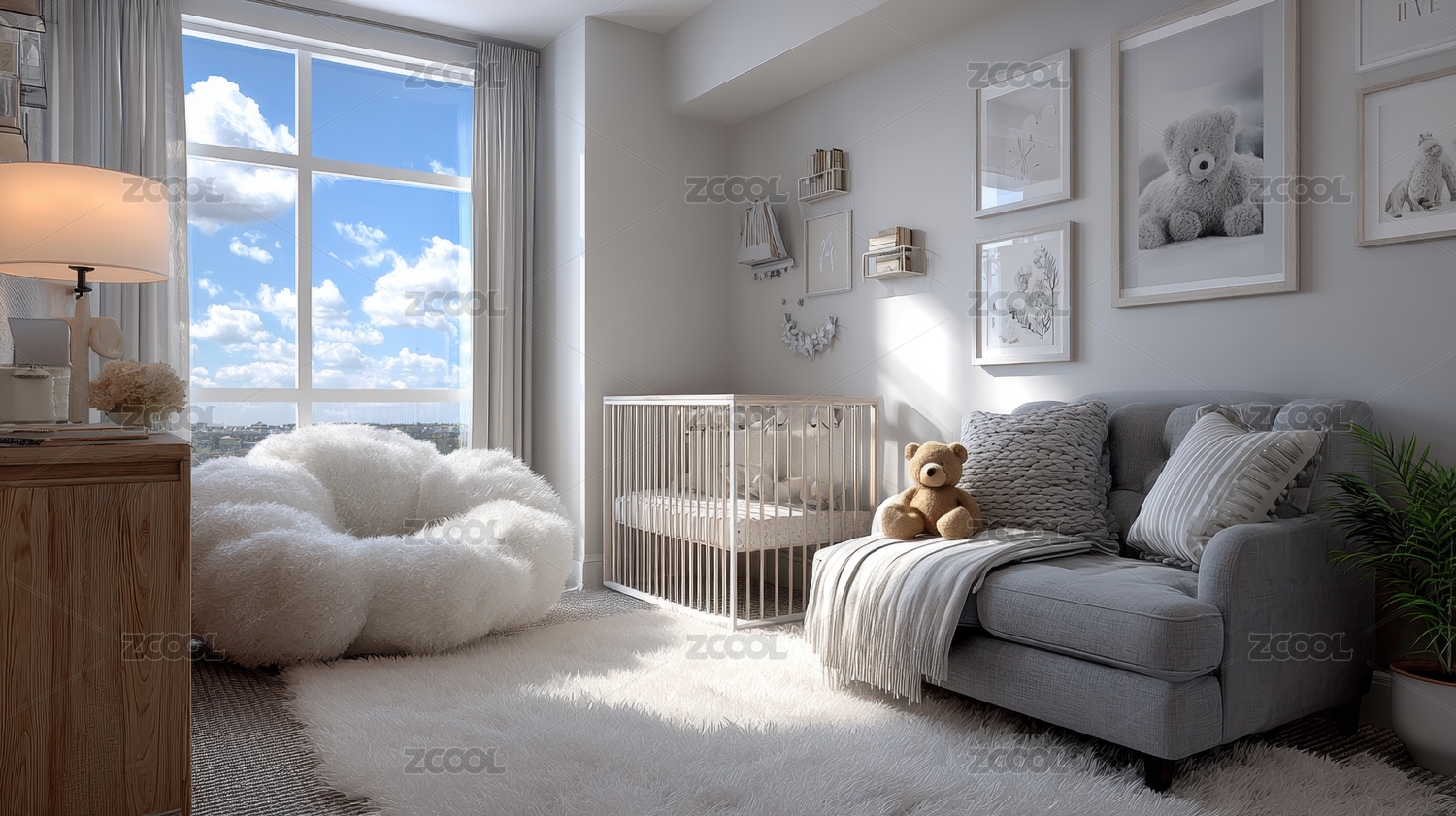 温馨婴儿房自然色调与柔和灯光营造宁静氛围