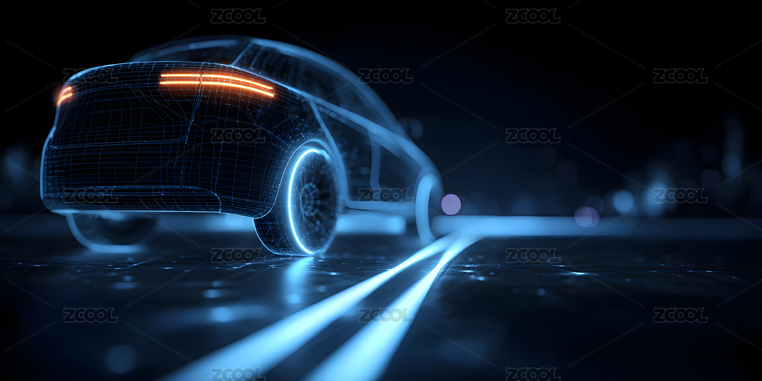 科技感蓝色线条汽车图