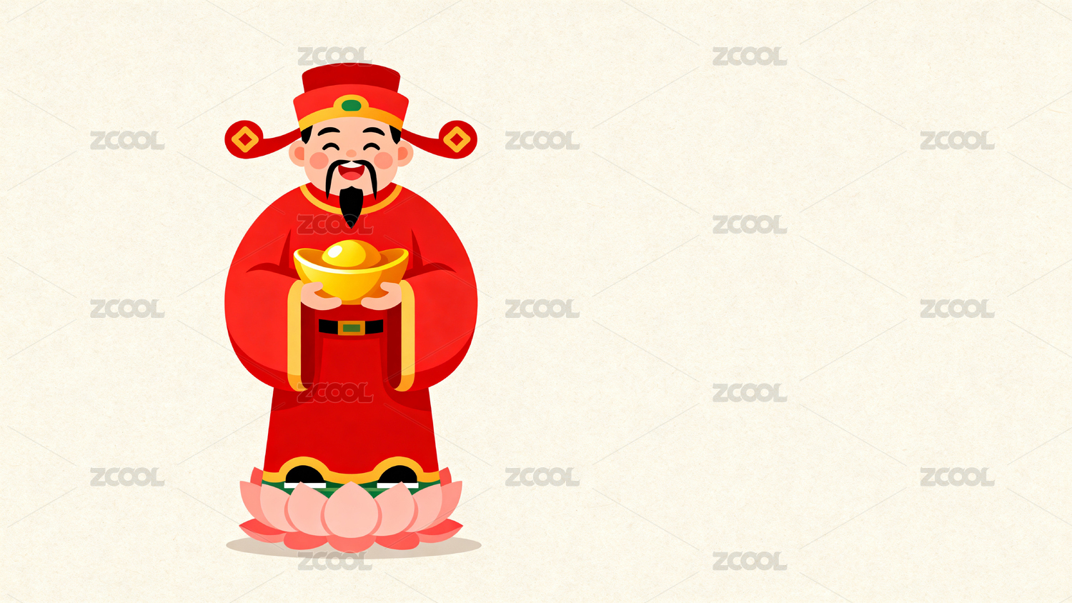 卡通财神爷手持元宝笑容满面