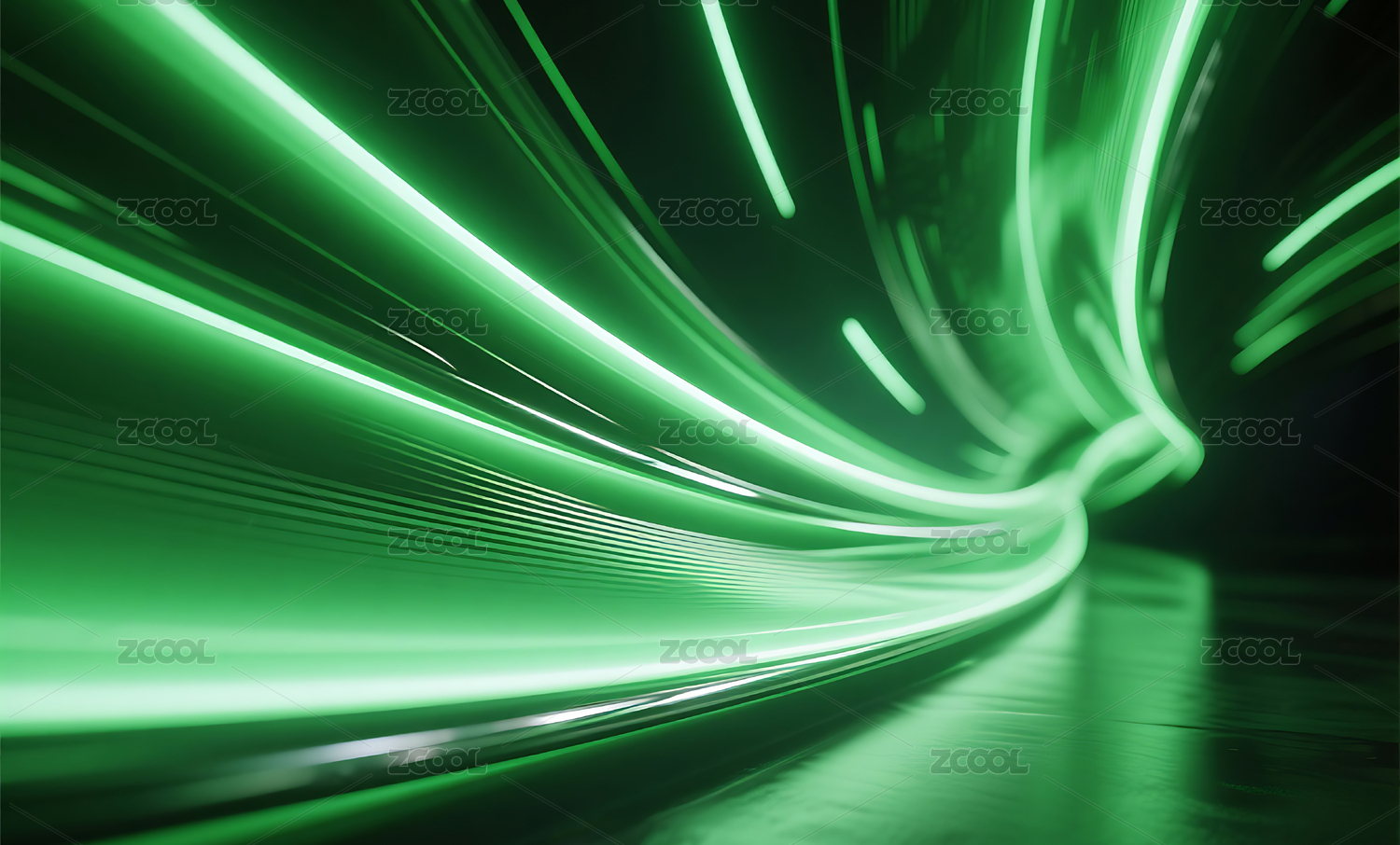 动感绿色光线构成的未来隧道