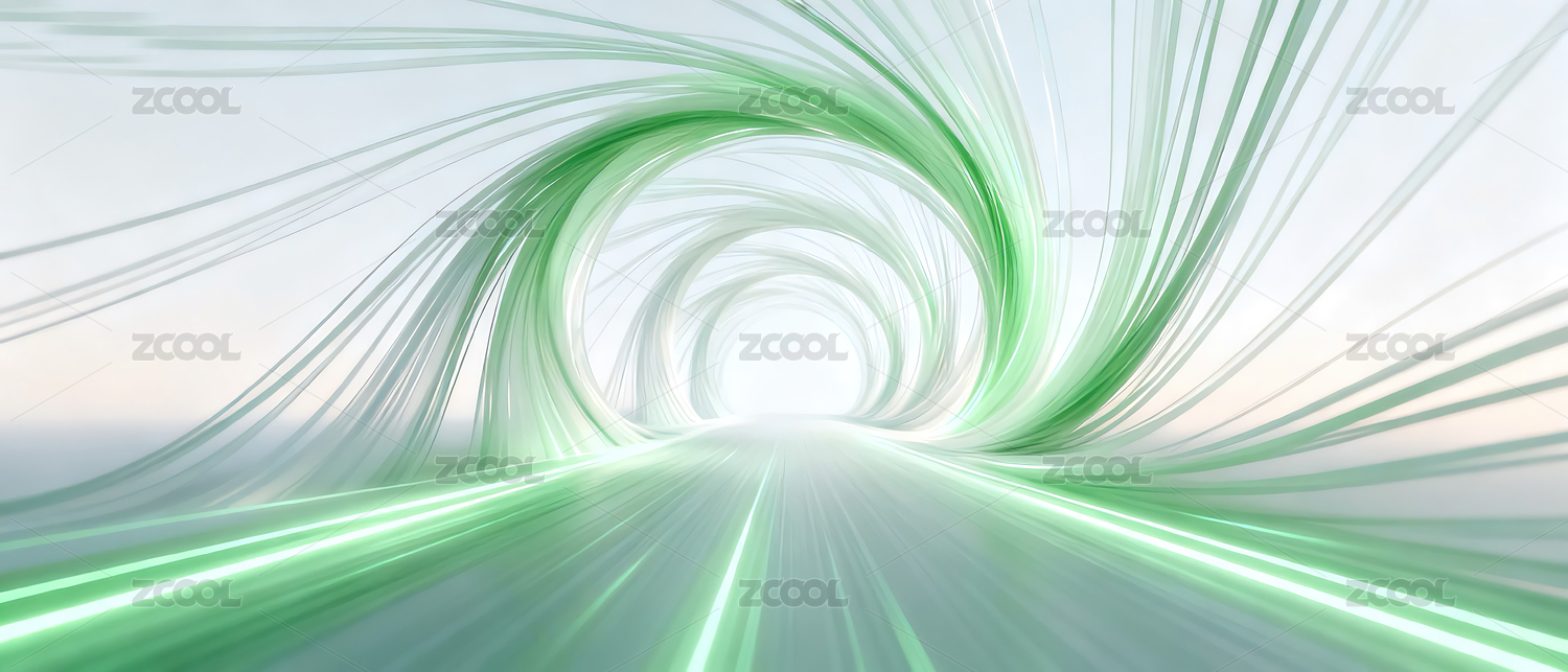 抽象,弯曲,白绿色,隧道,场景,背景,商务,主视觉,光影,渐变