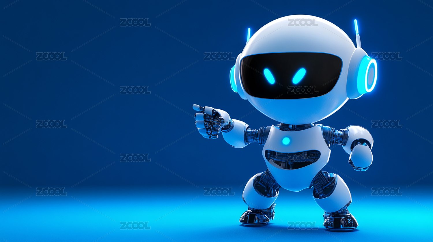 卡通人形机器人蓝色背景图