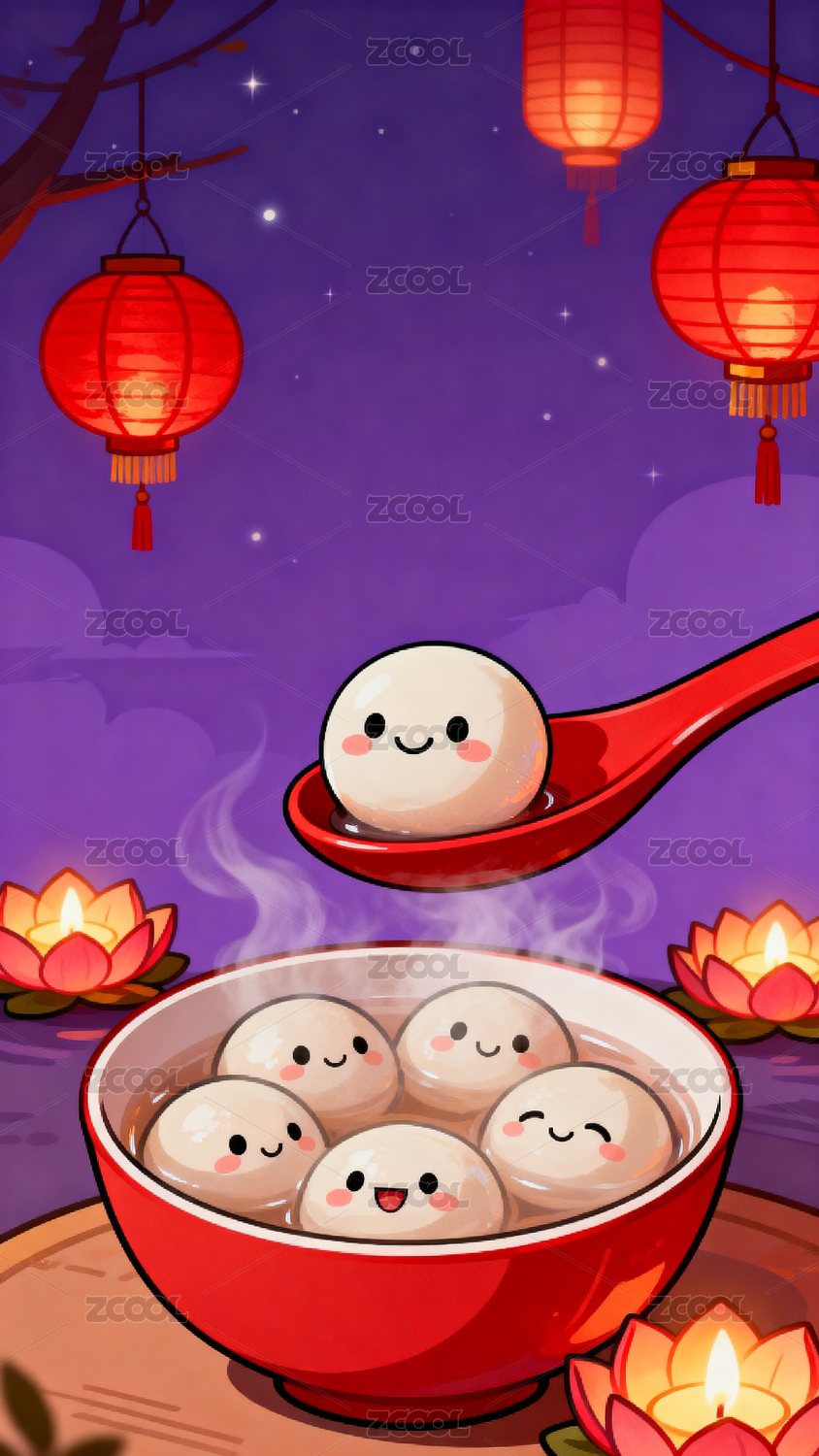 红色,灯笼,节日,传统,可爱,图案,背景,汤圆,碗,汤碗
