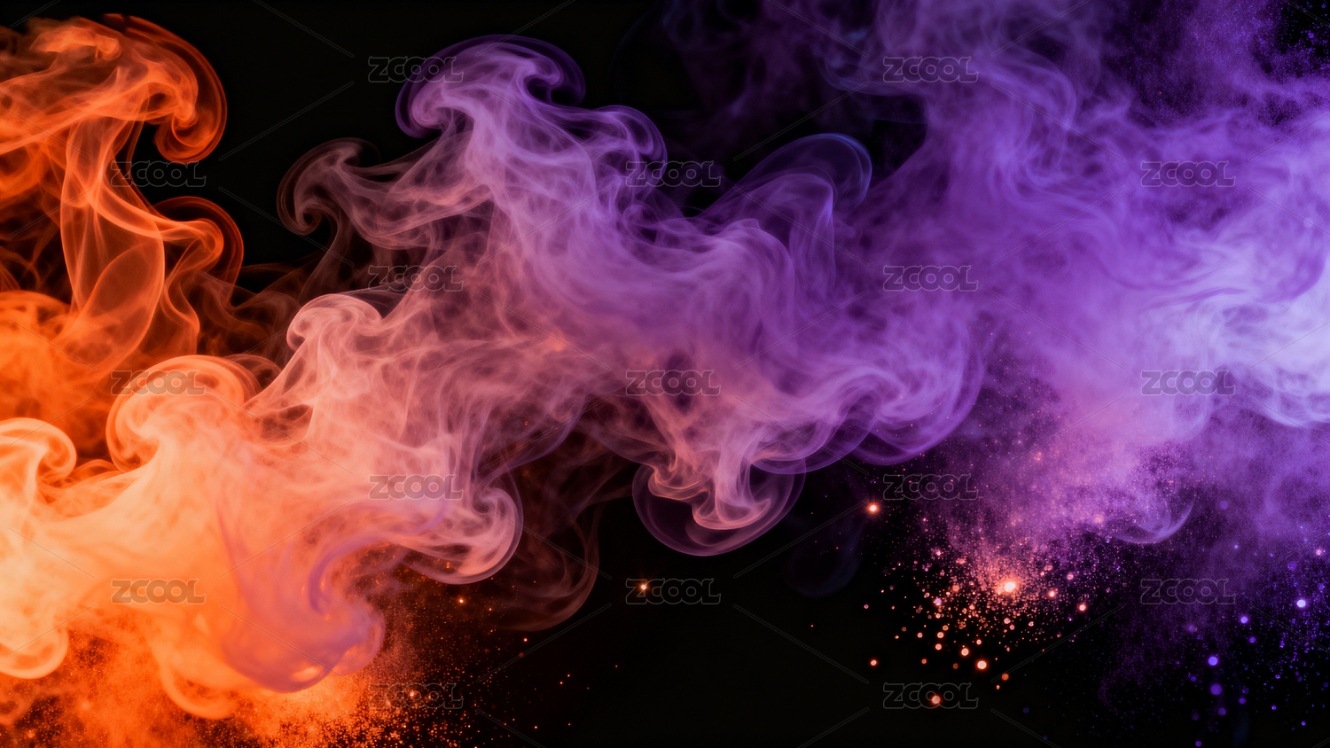 紫色与橙色烟雾交织
