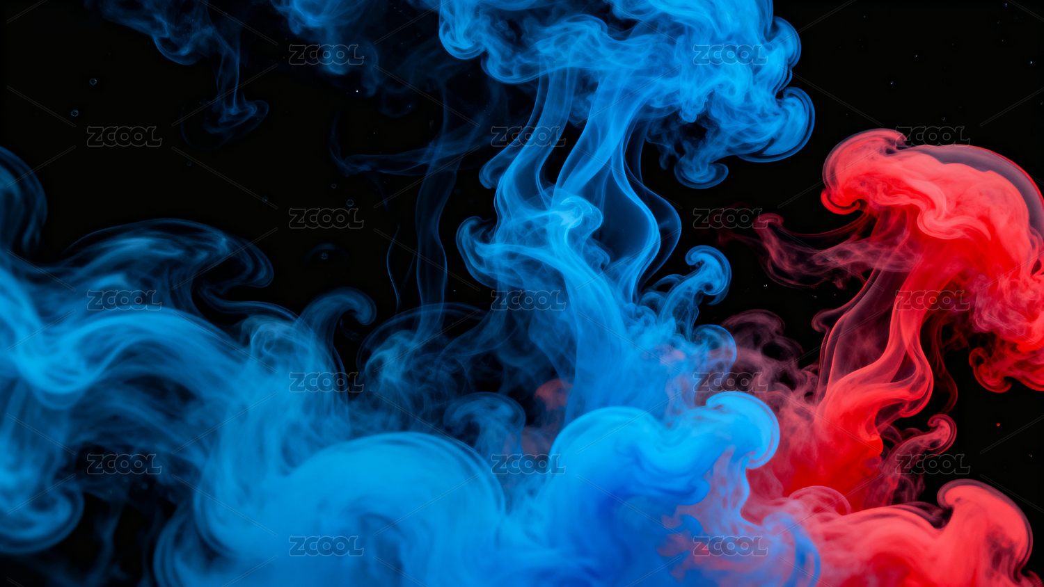 蓝红烟雾交织流动视觉效果