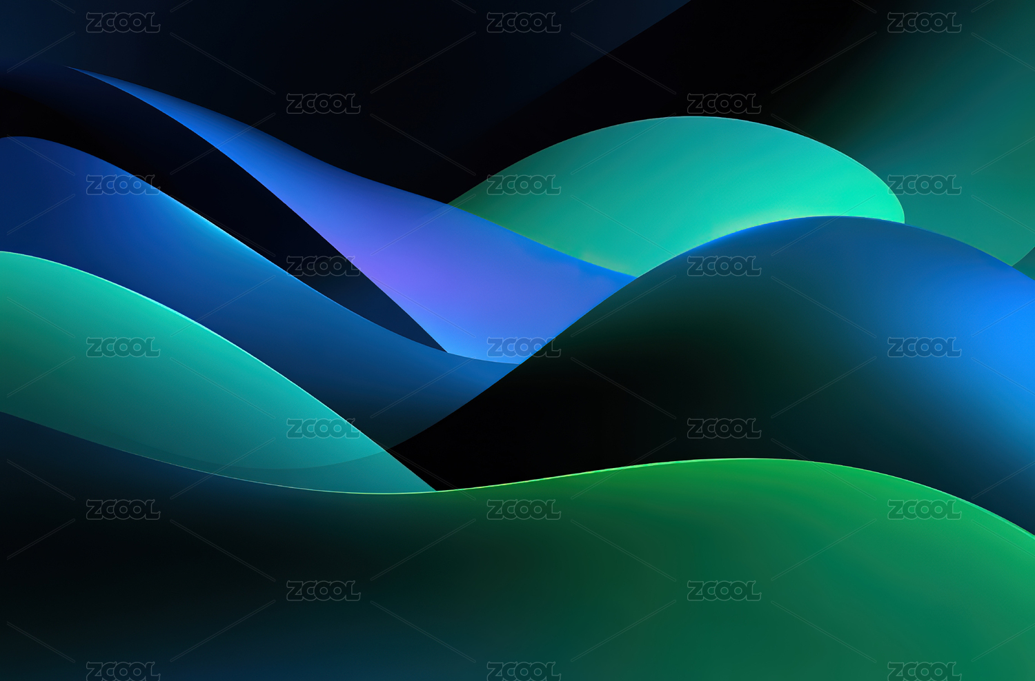 蓝绿渐变波浪抽象图案