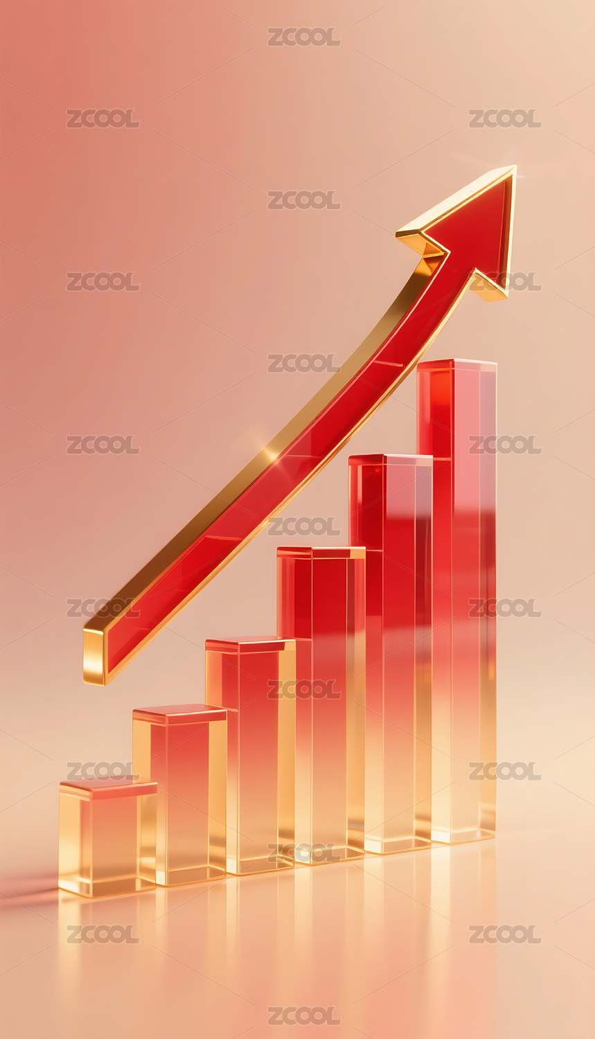 红金色渐变玻璃质感金融柱状图增长箭头背景