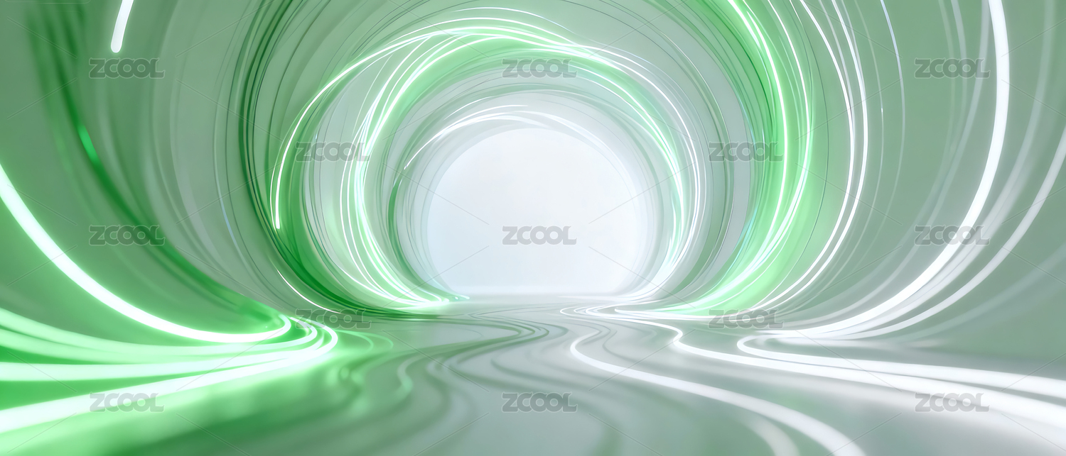 抽象,弯曲,白绿色,隧道,场景,背景,商务,主视觉,光影,渐变