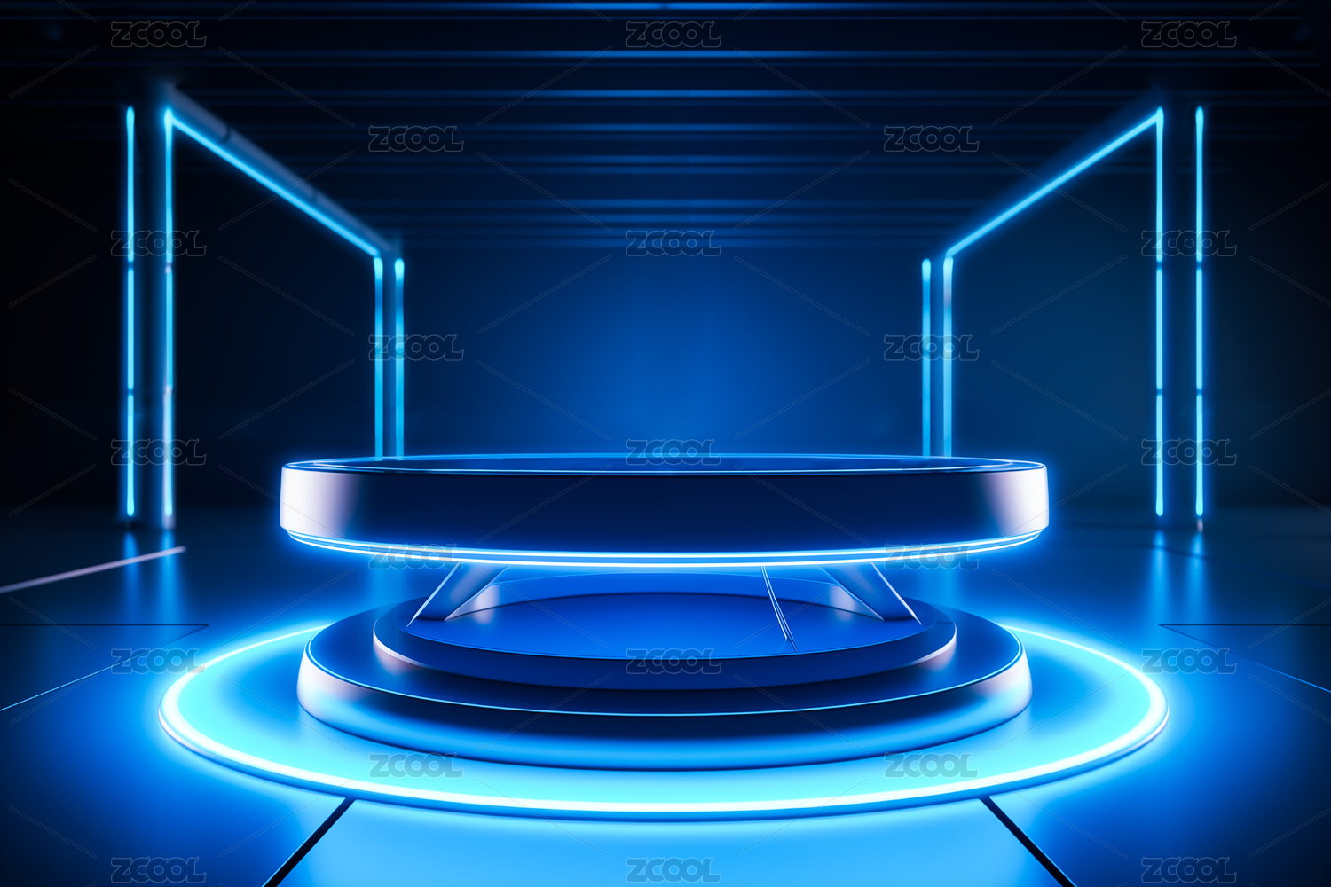 科技,抽象,蓝色,背景,室内,物体,平台,建筑,发光,展示
