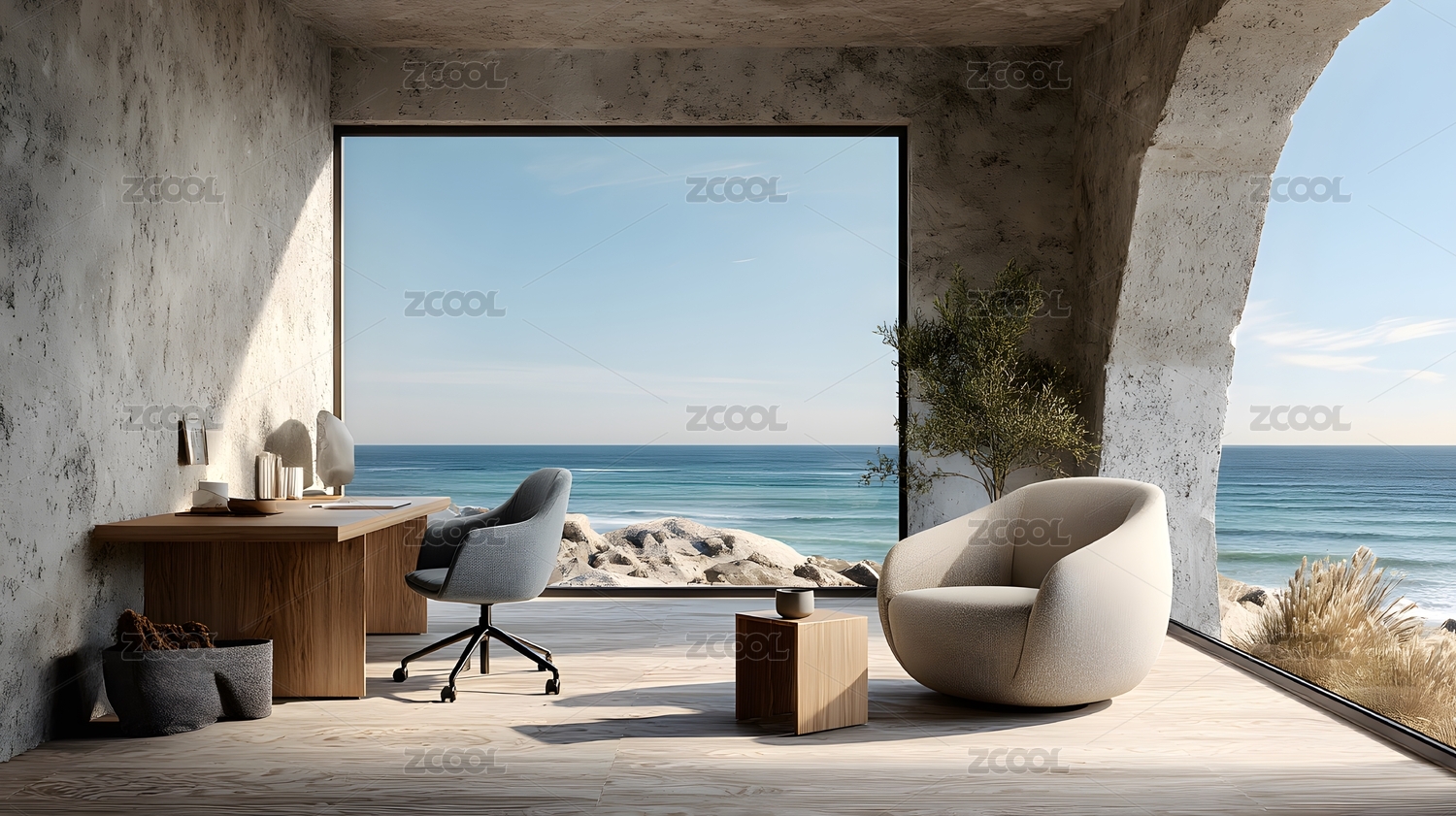 海景办公休闲区,工作放松氛围