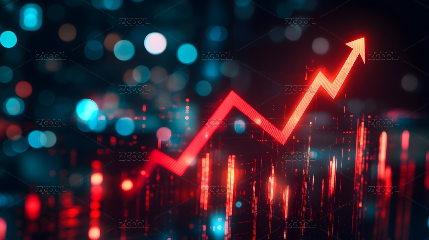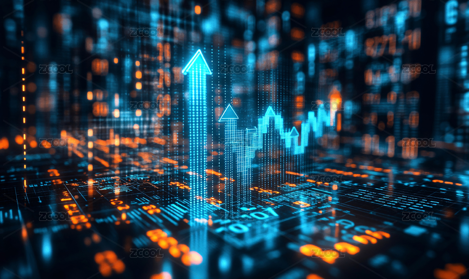 全息,蓝色,箭头,背景,上升,上涨,股票,三维,空间,商务