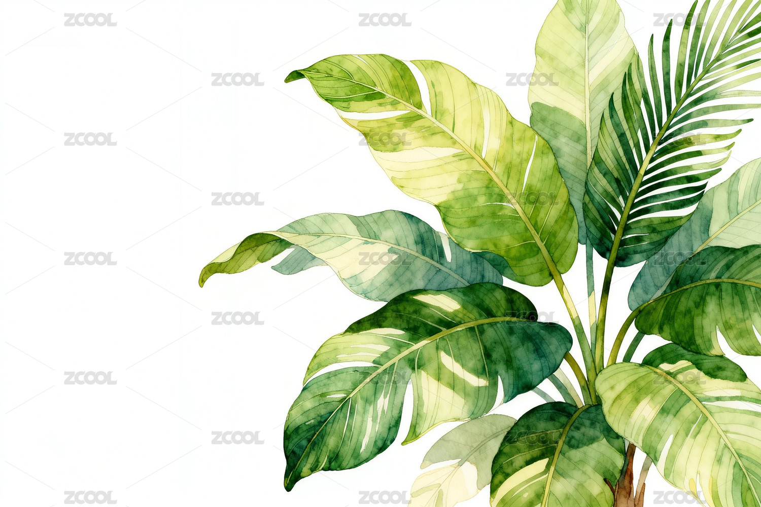 水彩芭蕉叶清新氛围