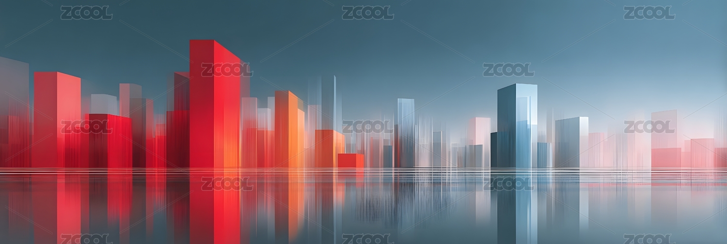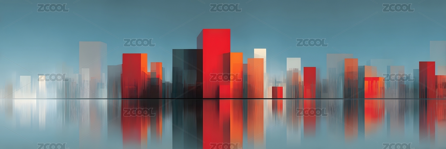 城市剪影水面倒影抽象艺术