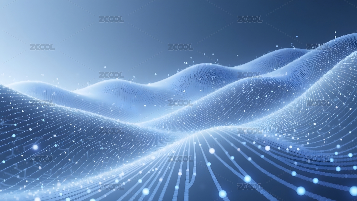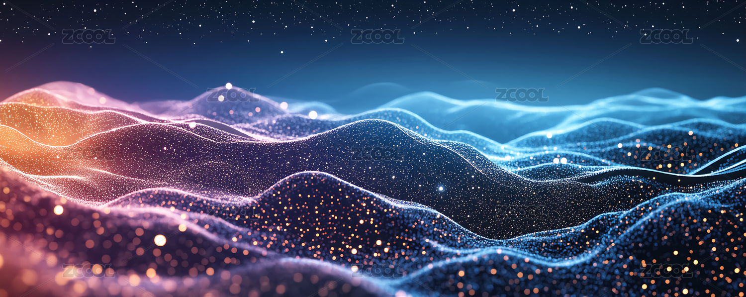 蓝色光点粒子三维波浪背景图