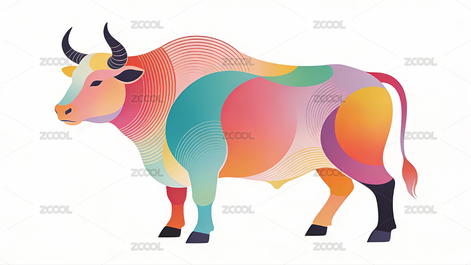 炫彩抽象牛年设计