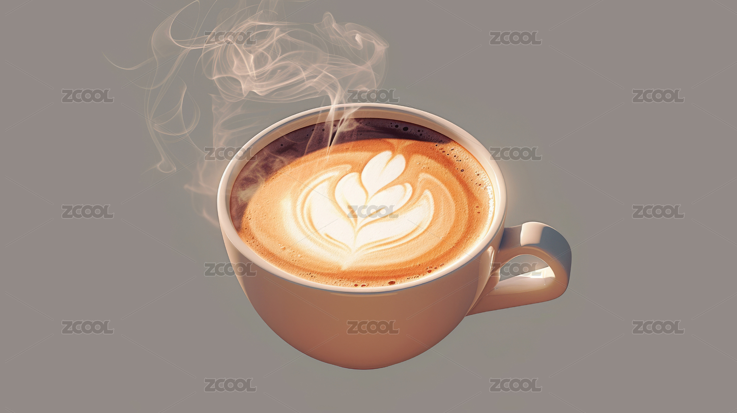 清新明亮一杯拉花浓稠牛奶咖啡饮料