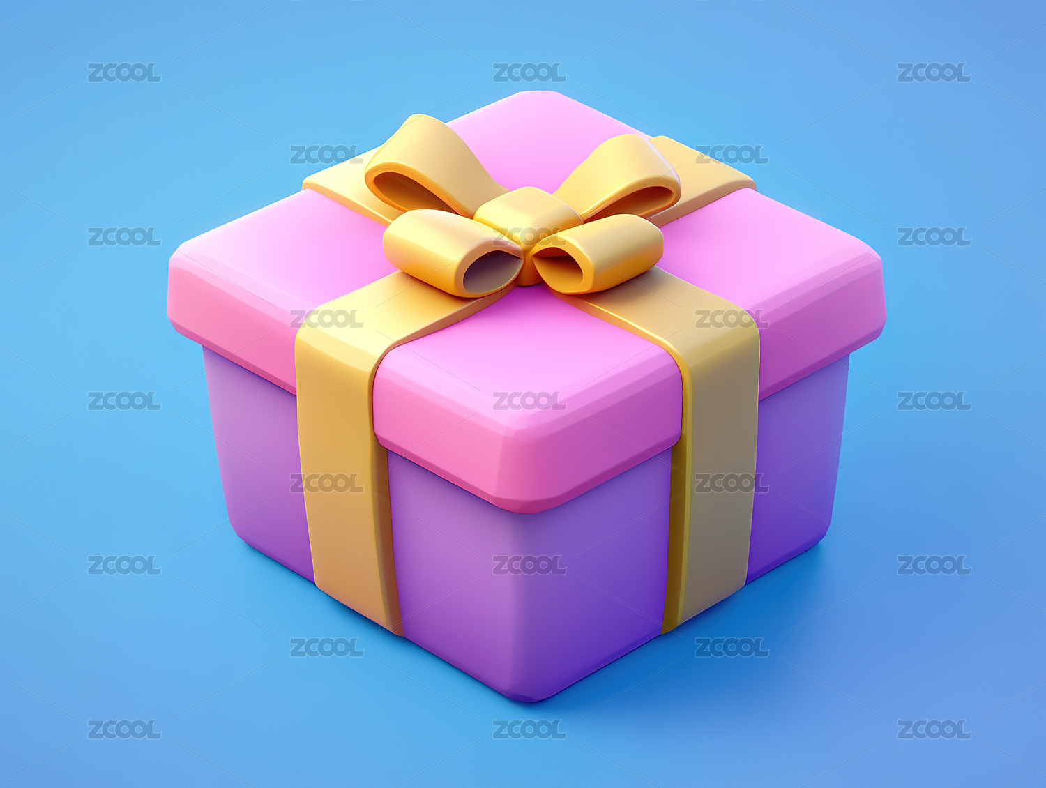 清新糖果色有彩色丝带礼盒3D卡通立体插画