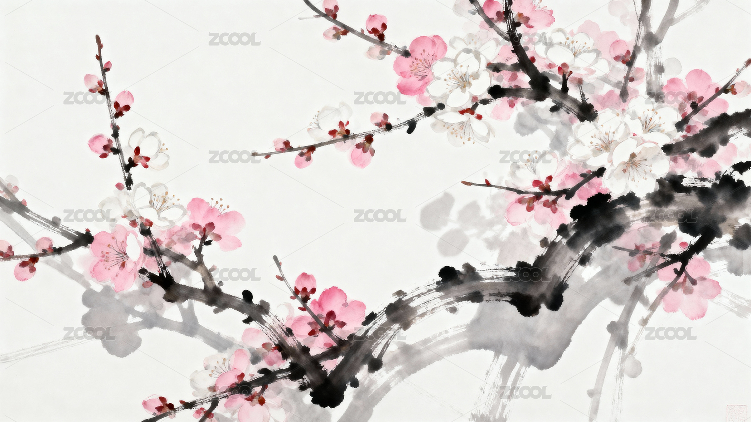 粉色,背景,构图,花瓣,花蕊,白色,花苞,花枝,花影,梅花