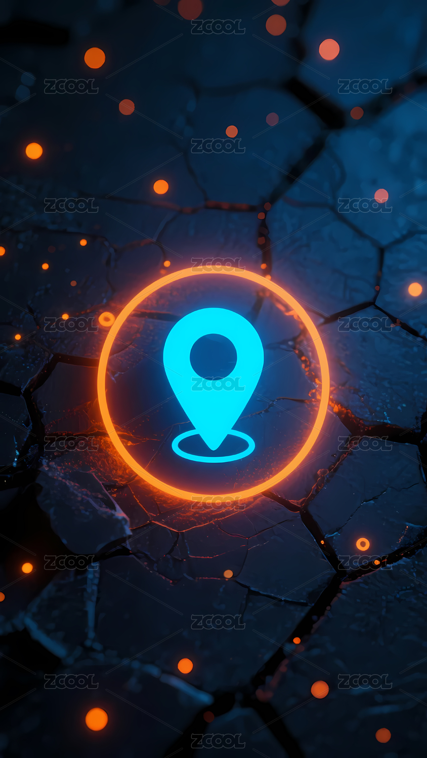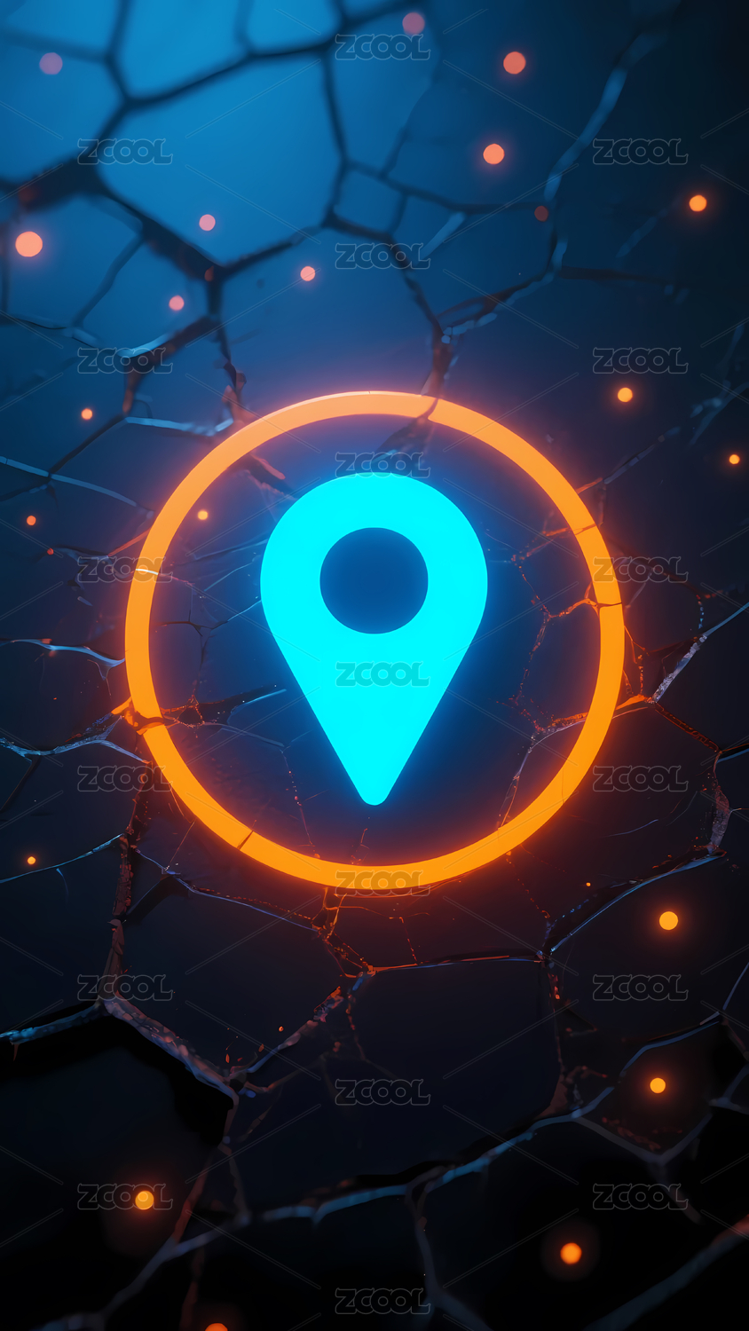 蓝色,现代,橙色,科技,中心,定位,图标,六边形,网格,光环