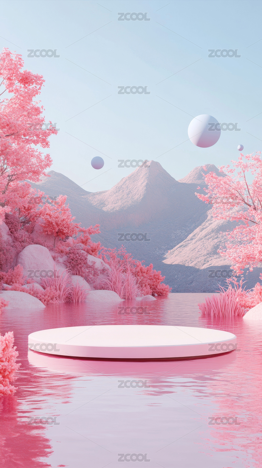 粉色山水展示台场景