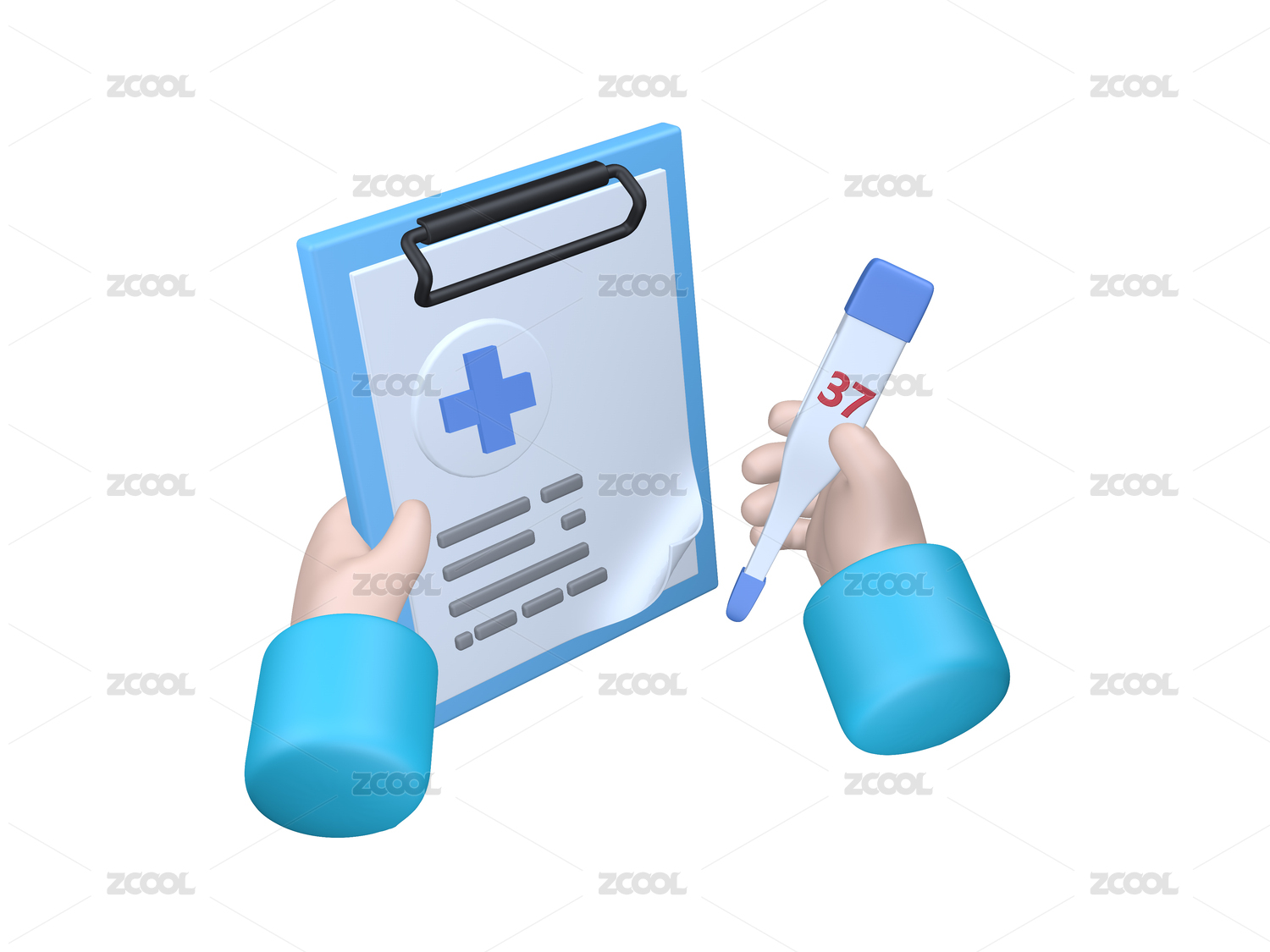 3d蓝色笔记报告夹与金色十字盾牌医疗素材