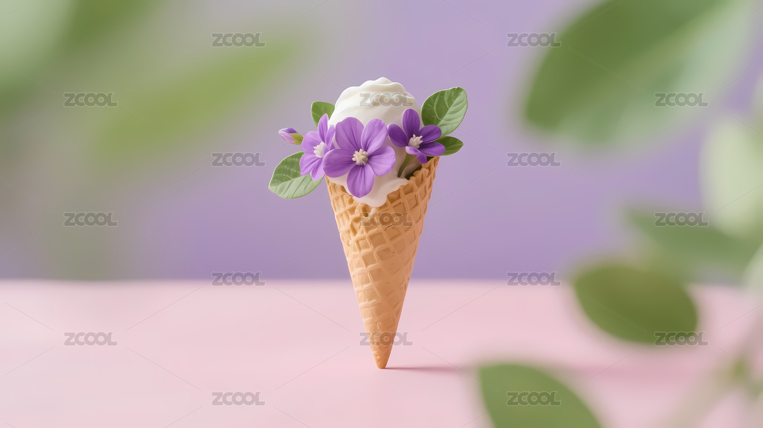 花束装在冰淇淋甜筒中清新淡雅的视觉艺术