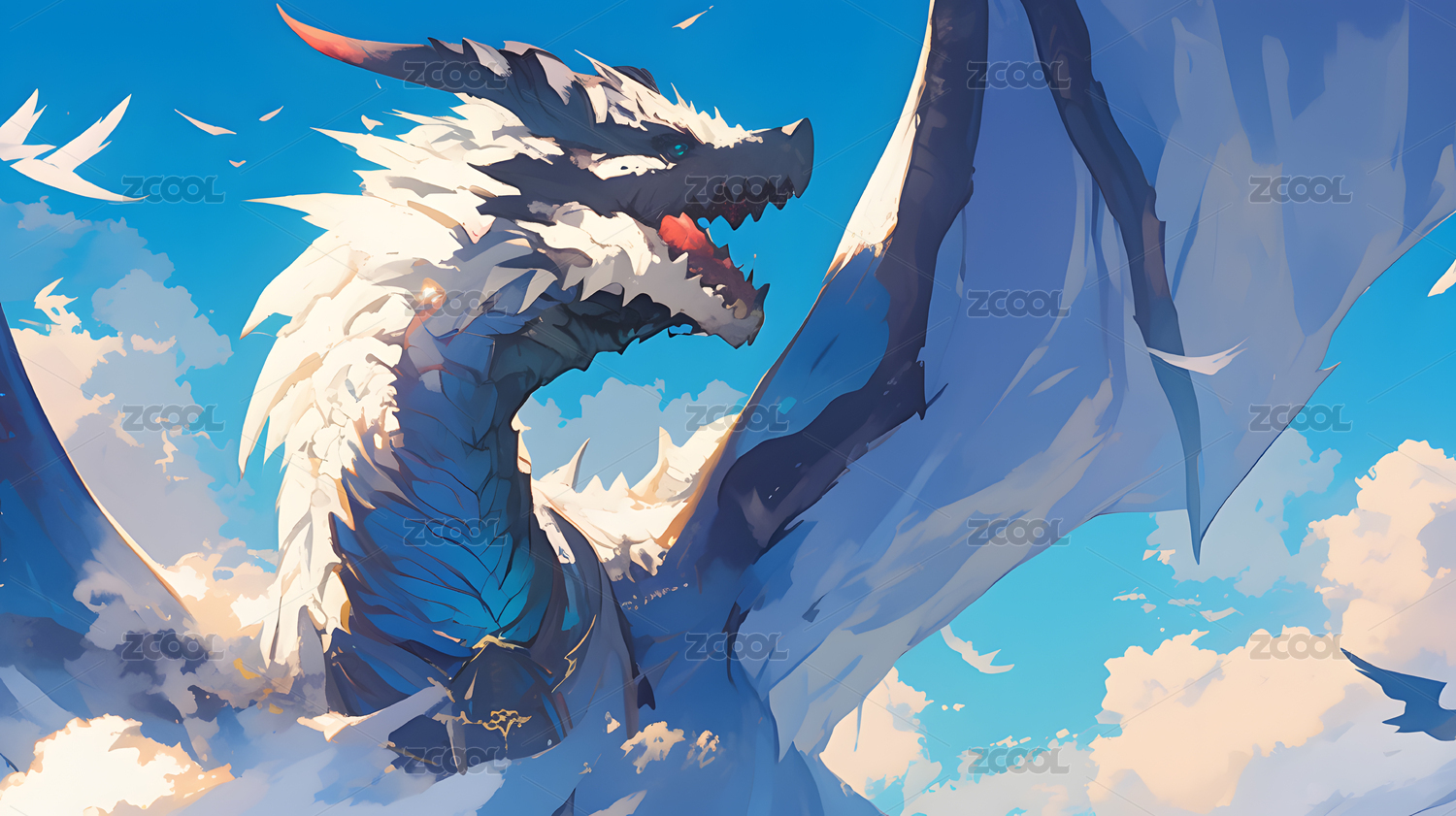 天空,梦幻,艺术,插画,翅膀,鳞片,自然,幻想,色彩,和谐