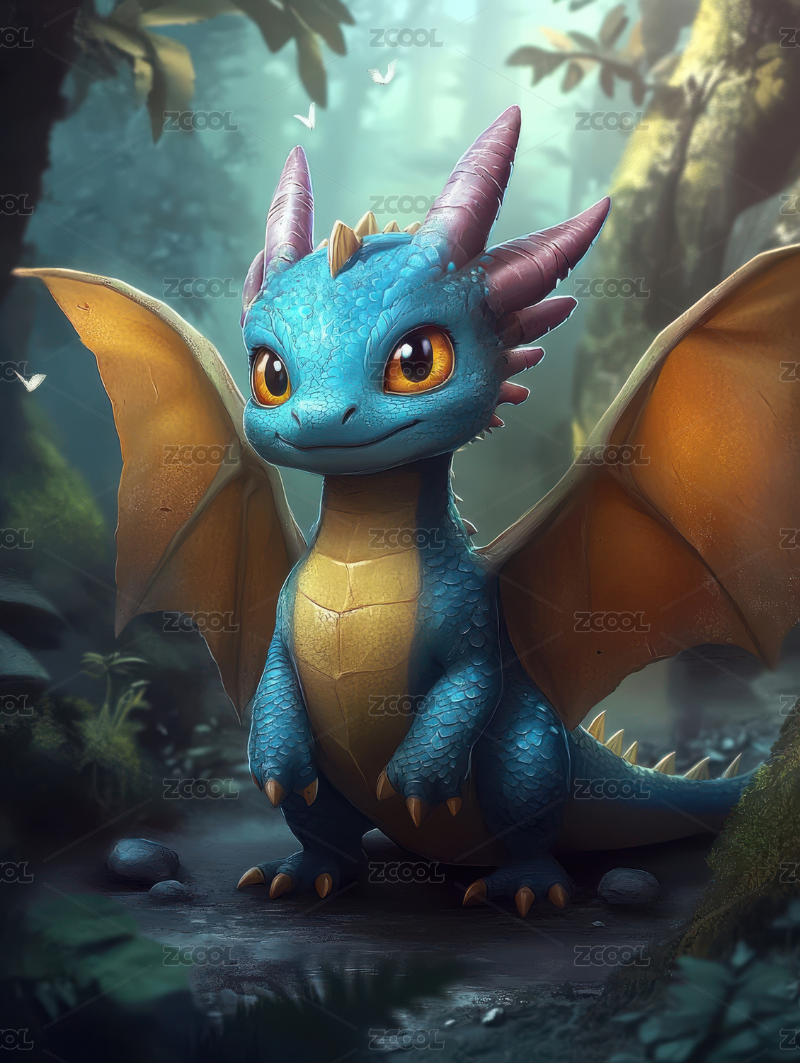 蓝龙栖息于山巅俯瞰梦幻山谷