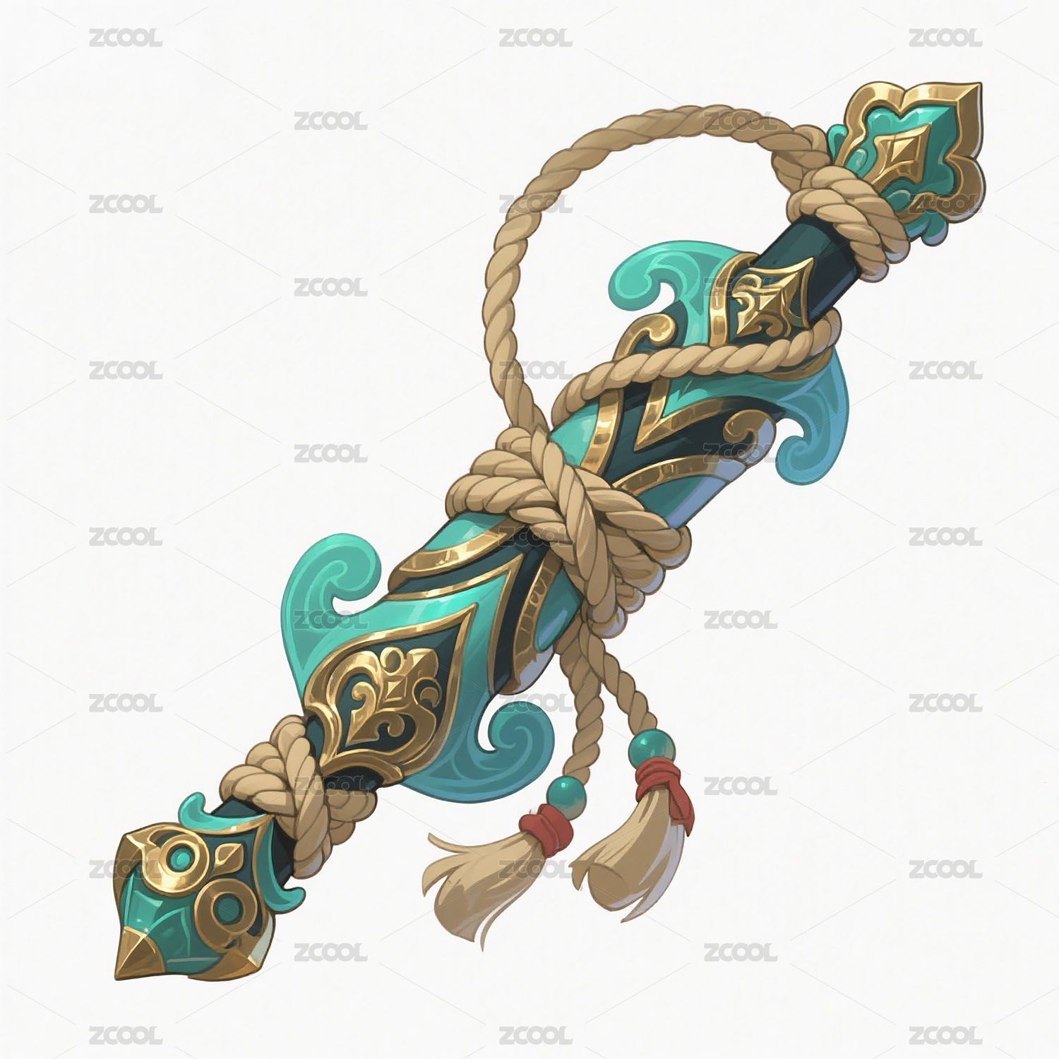 仙侠,国风,道具,游戏,绳圈,粗壮,金色,卷草纹,螺旋,装饰