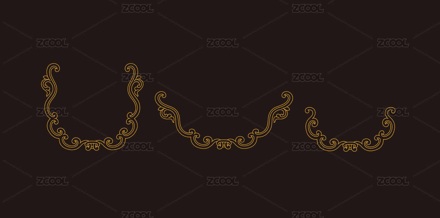 中国传统的艺术装饰边框花纹图案,黑色背景
