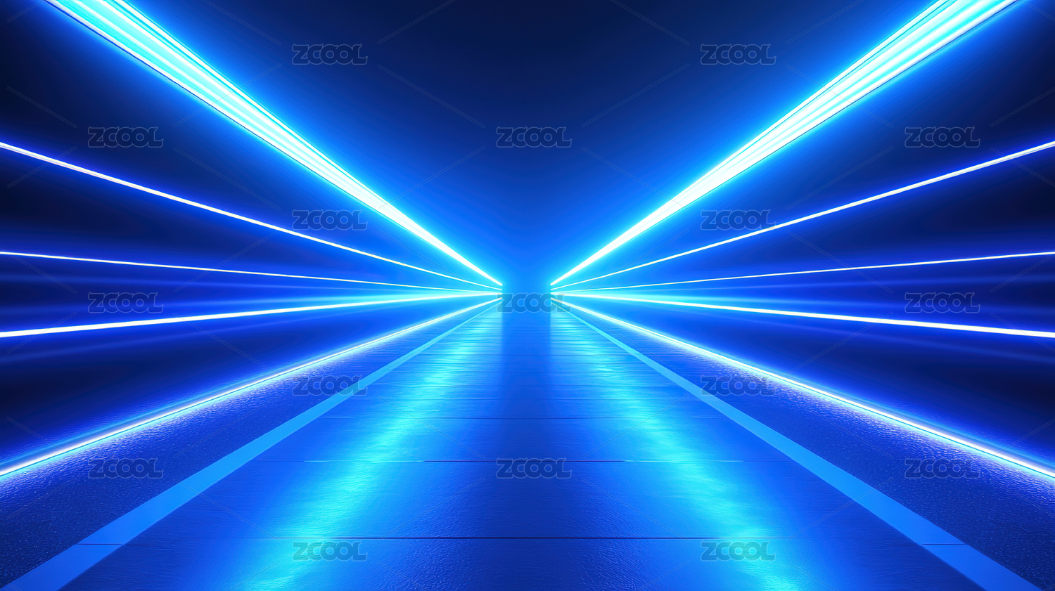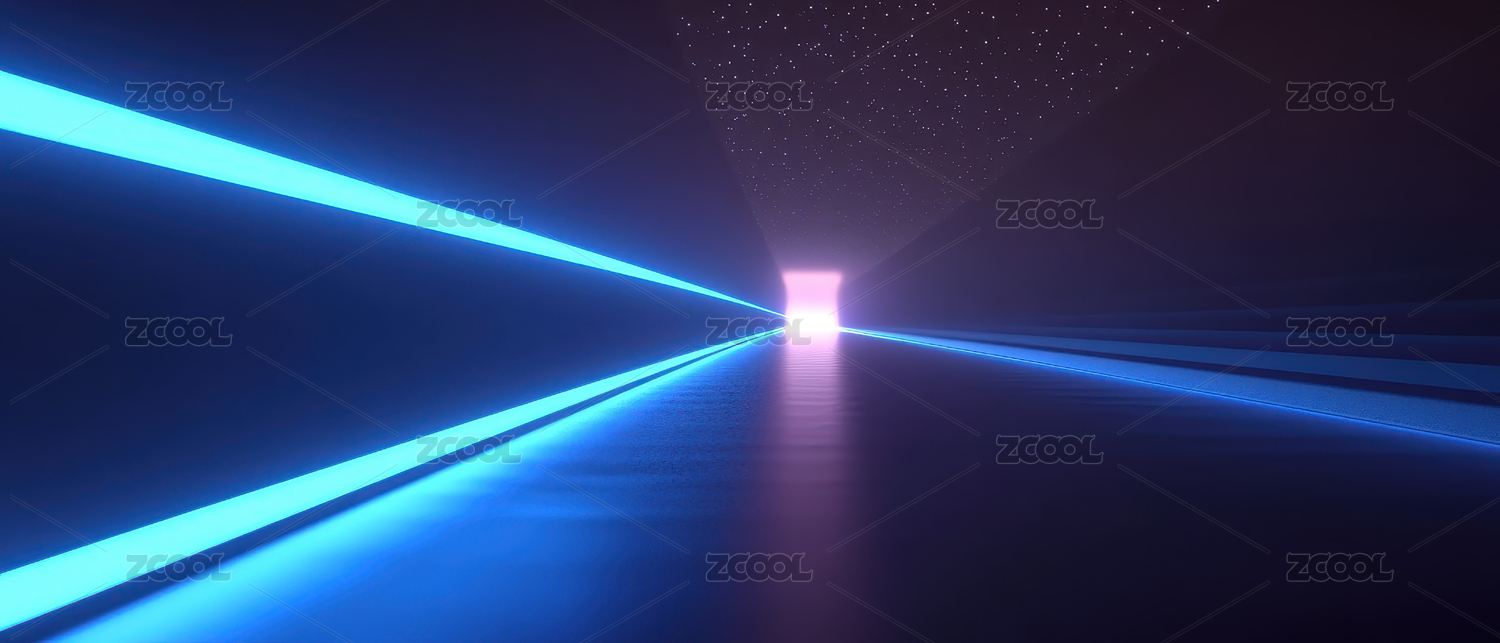 有发光线条条形灯组成的几何形状科技感通道隧道背景素材
