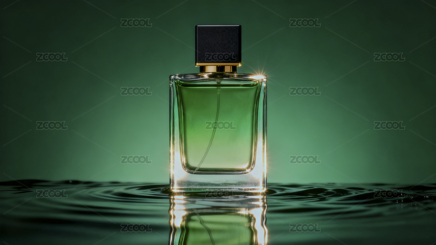 香水瓶,优雅,光影,静物,背景,香水,电商,广告,绿色,水波纹