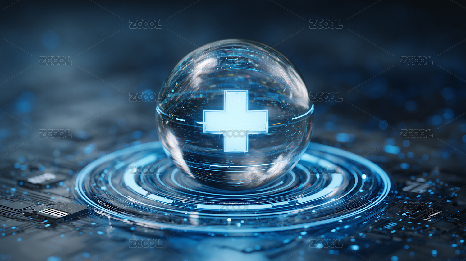 蓝色商务科技3D渲染盾牌图标主视觉背景