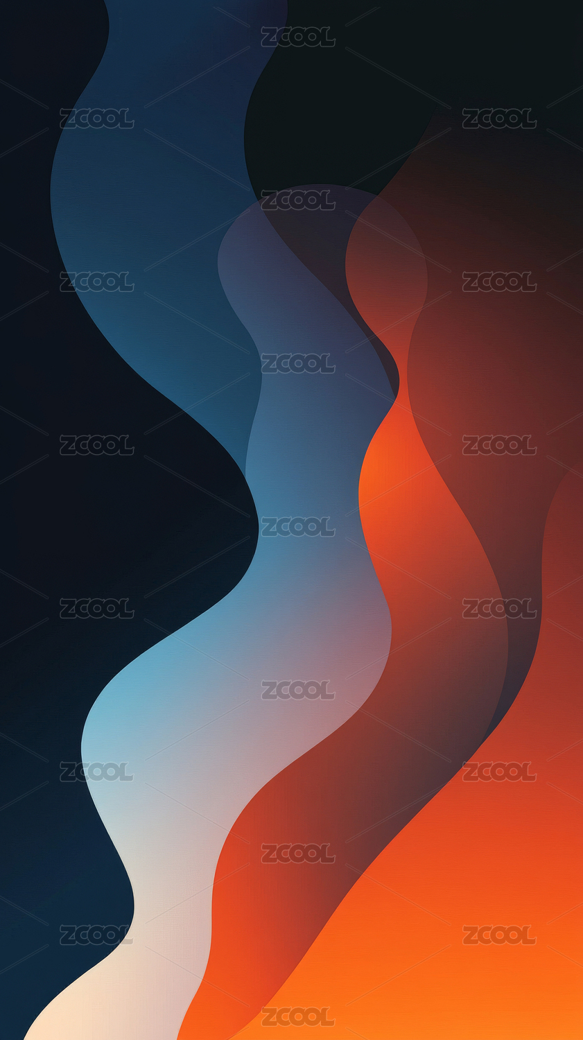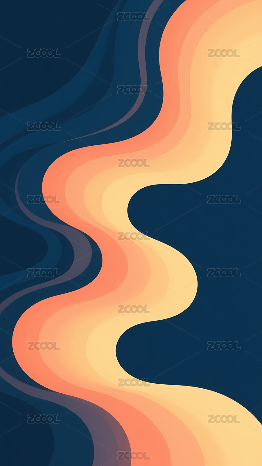 抽象,现代,艺术,波浪,橙色,渐变,深蓝,线条,浅蓝,动感