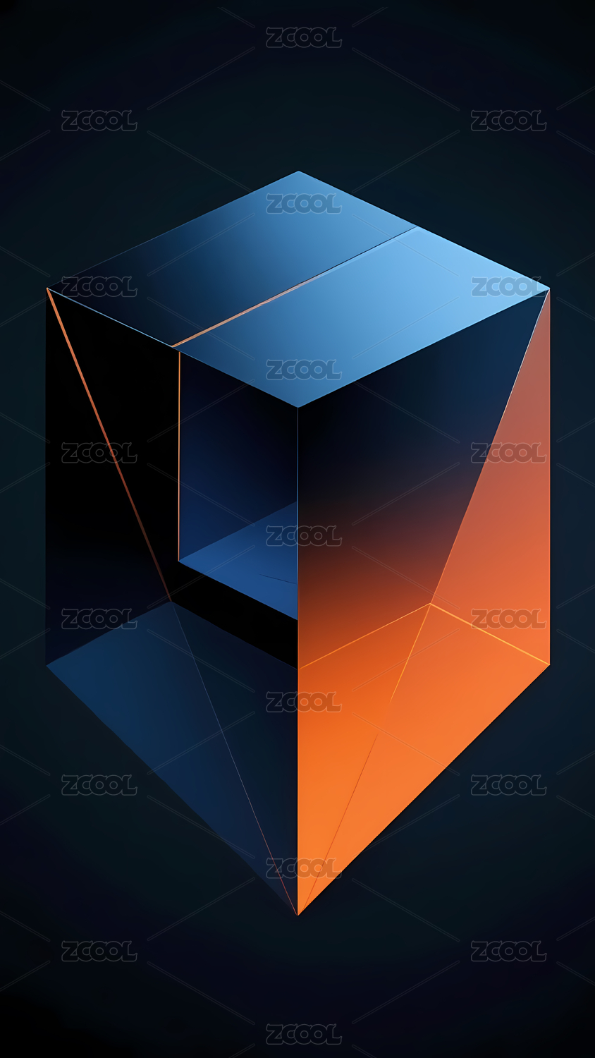 深蓝与亮橙立体立方体