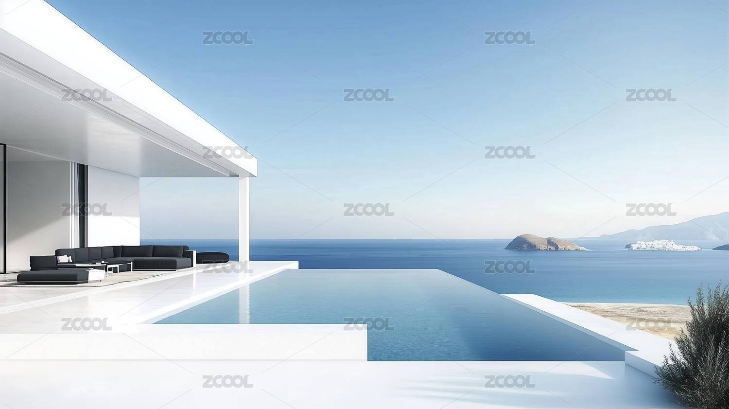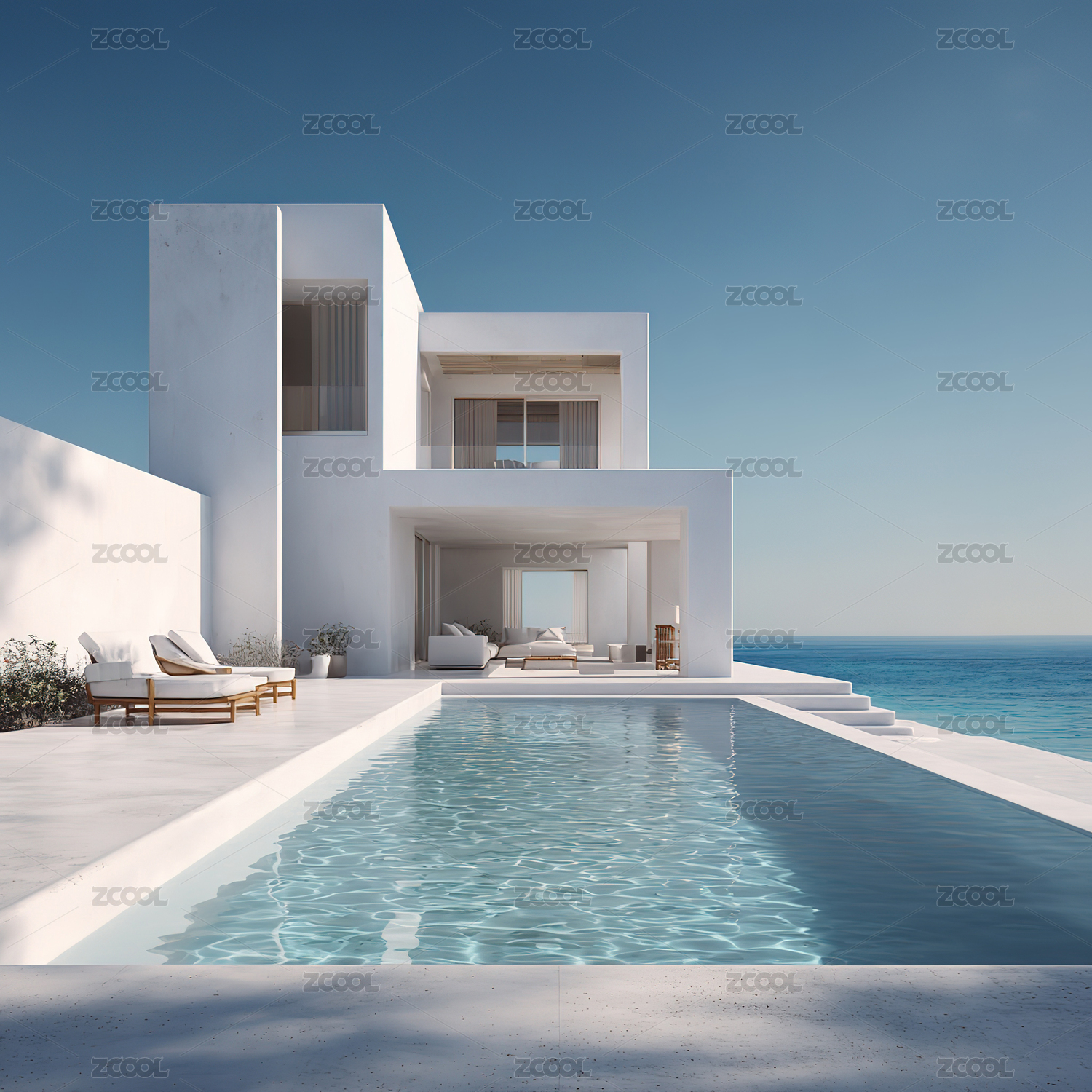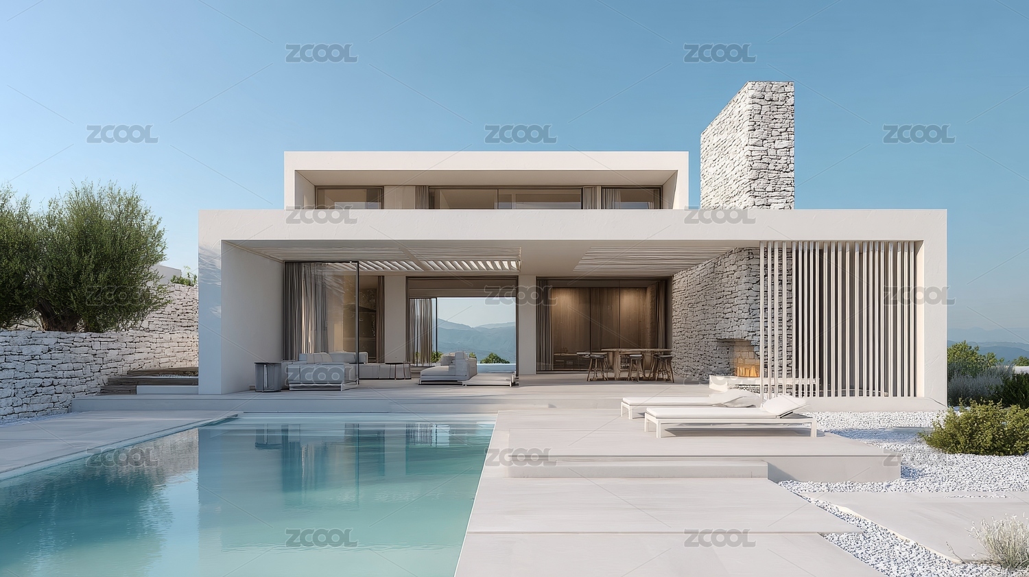 现代,别墅,豪宅,房屋,建筑,泳池,黄昏,自然,美景,简约