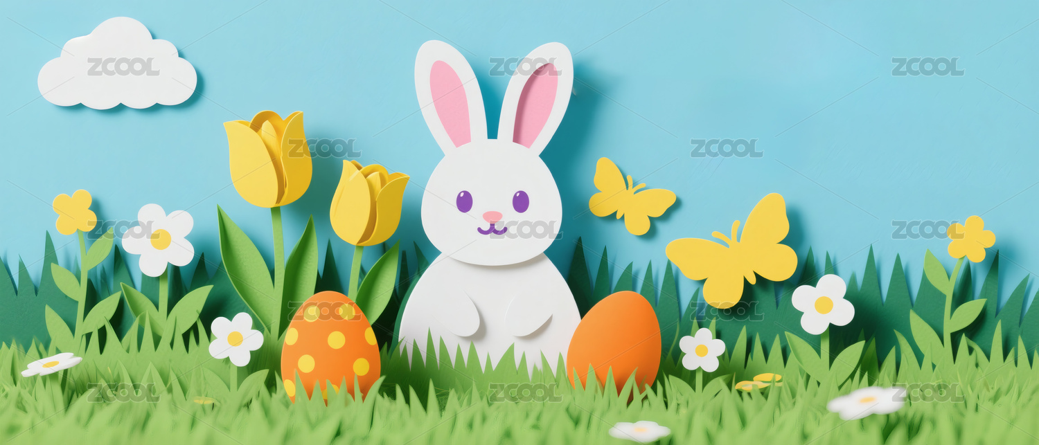 复活节兔子可爱节日装饰场景