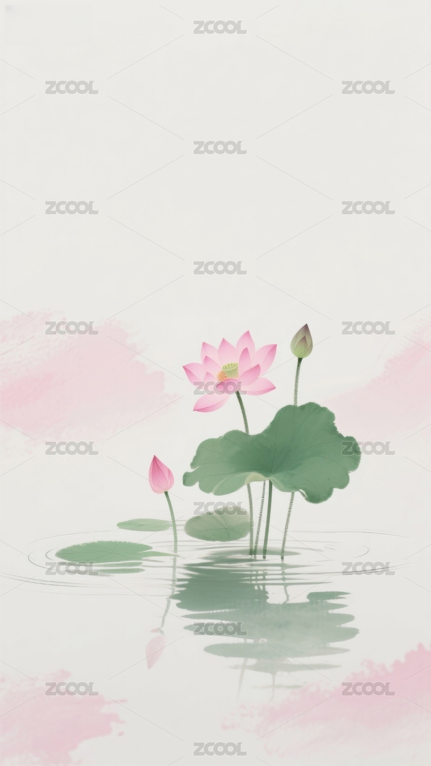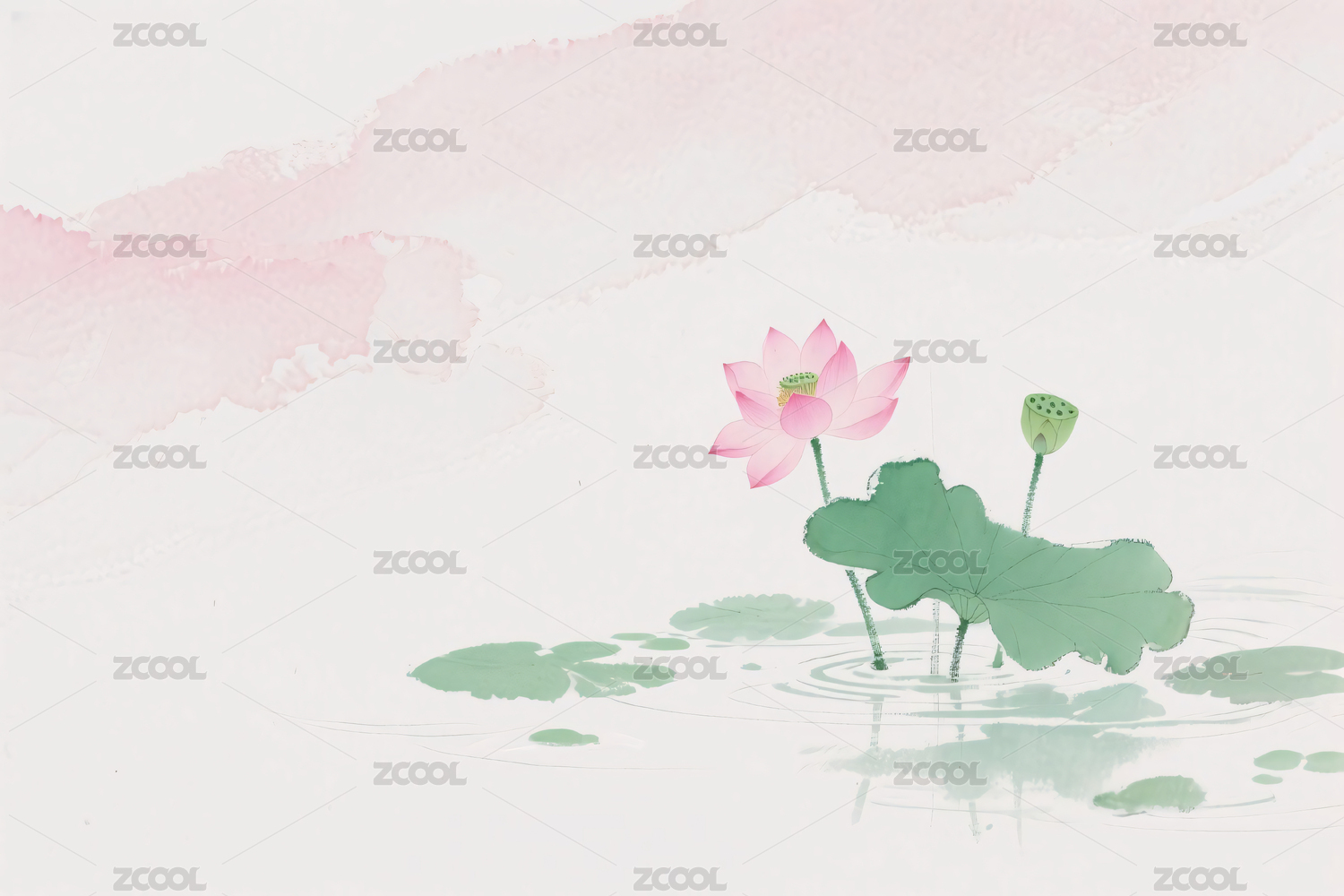 荷花,水墨画,莲花,荷叶,淡雅,中国风,国画,粉色,写意,禅意