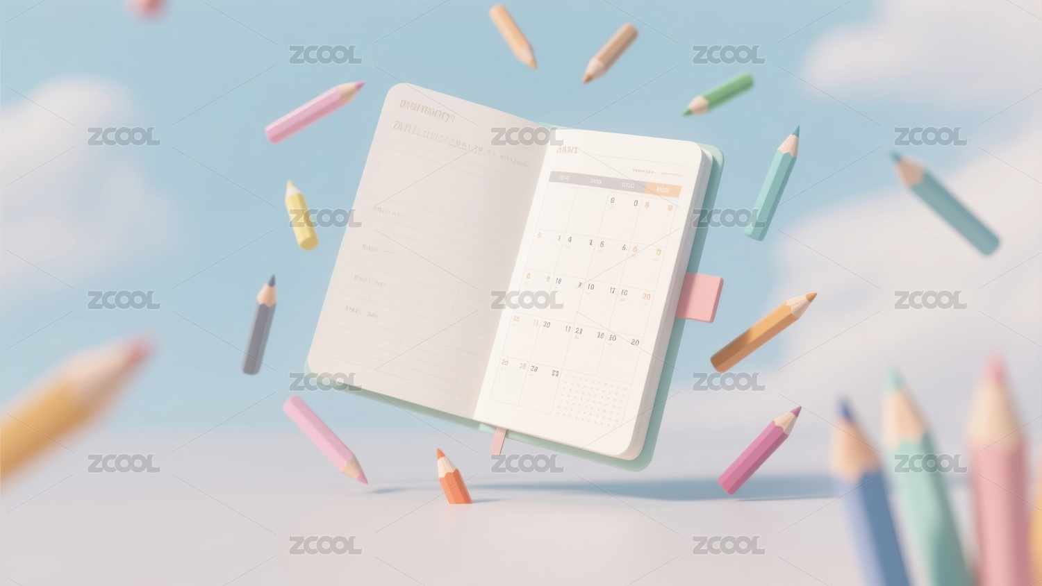 3d卡通笔记本与笔