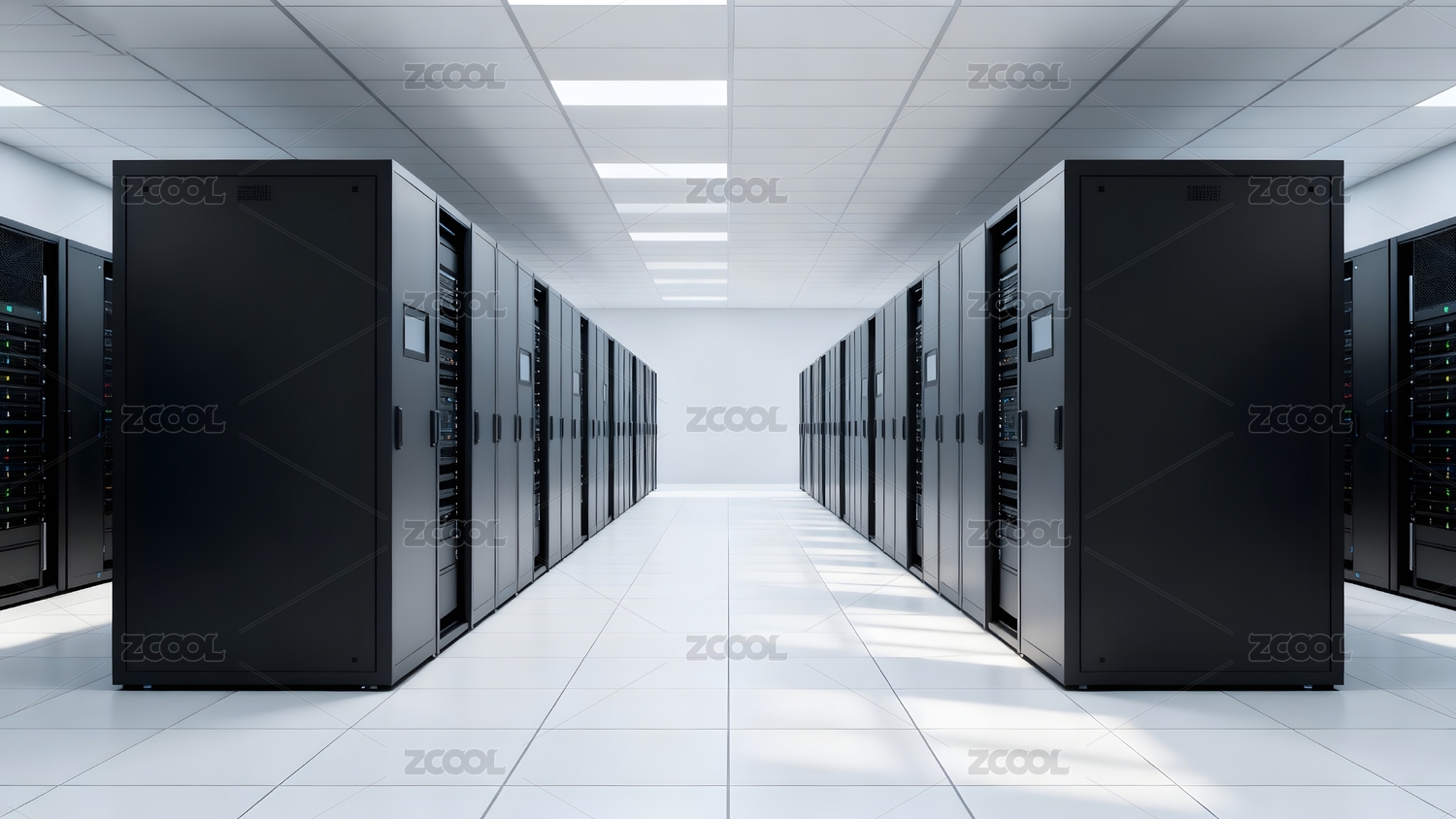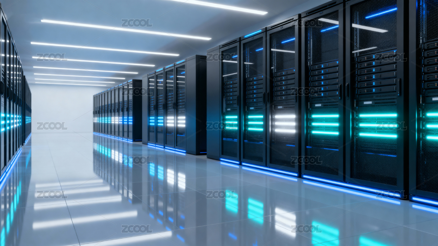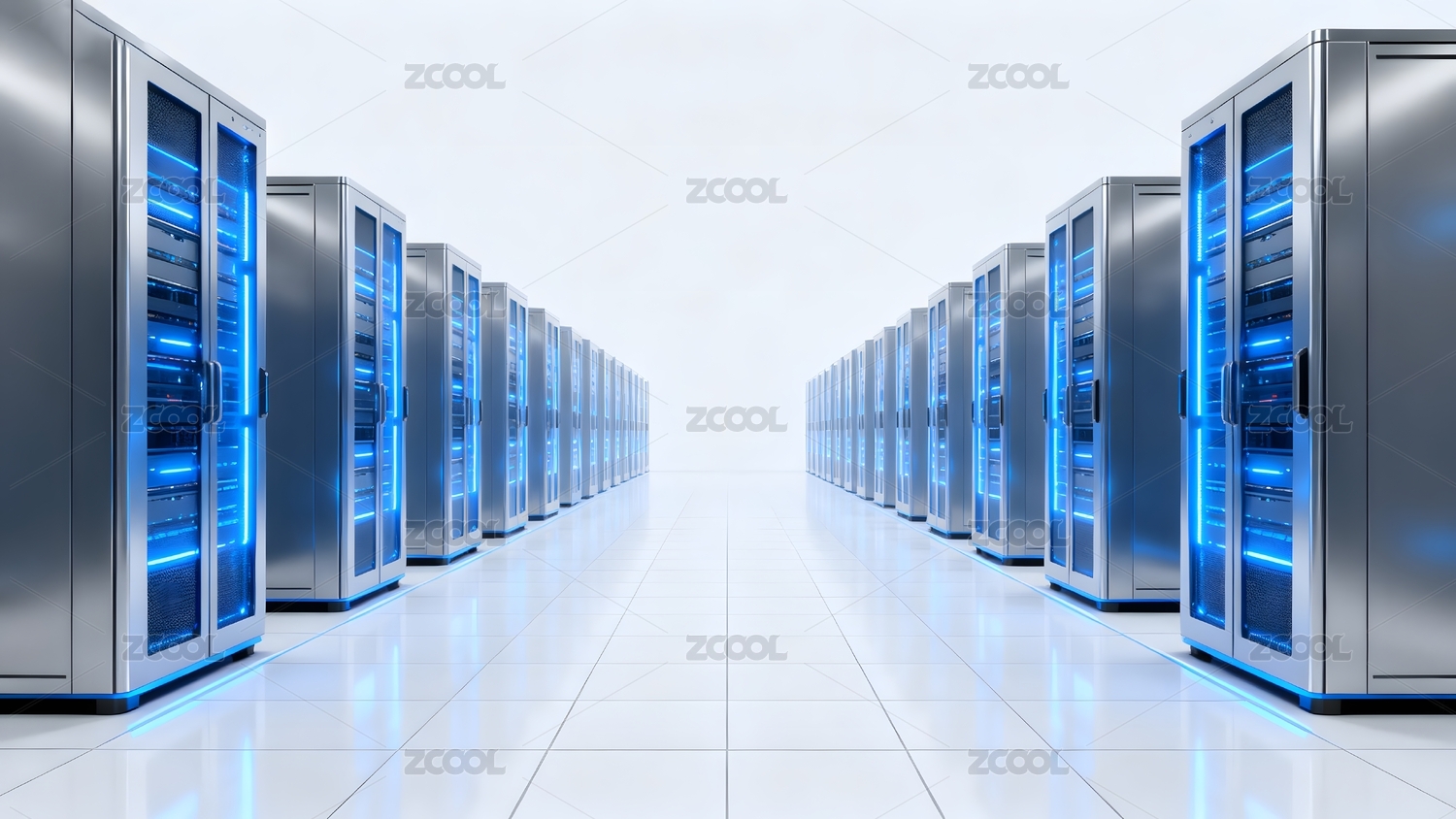 三维渲染的现代化高科技的服务器机房,强大的数据库和运算存储能力。