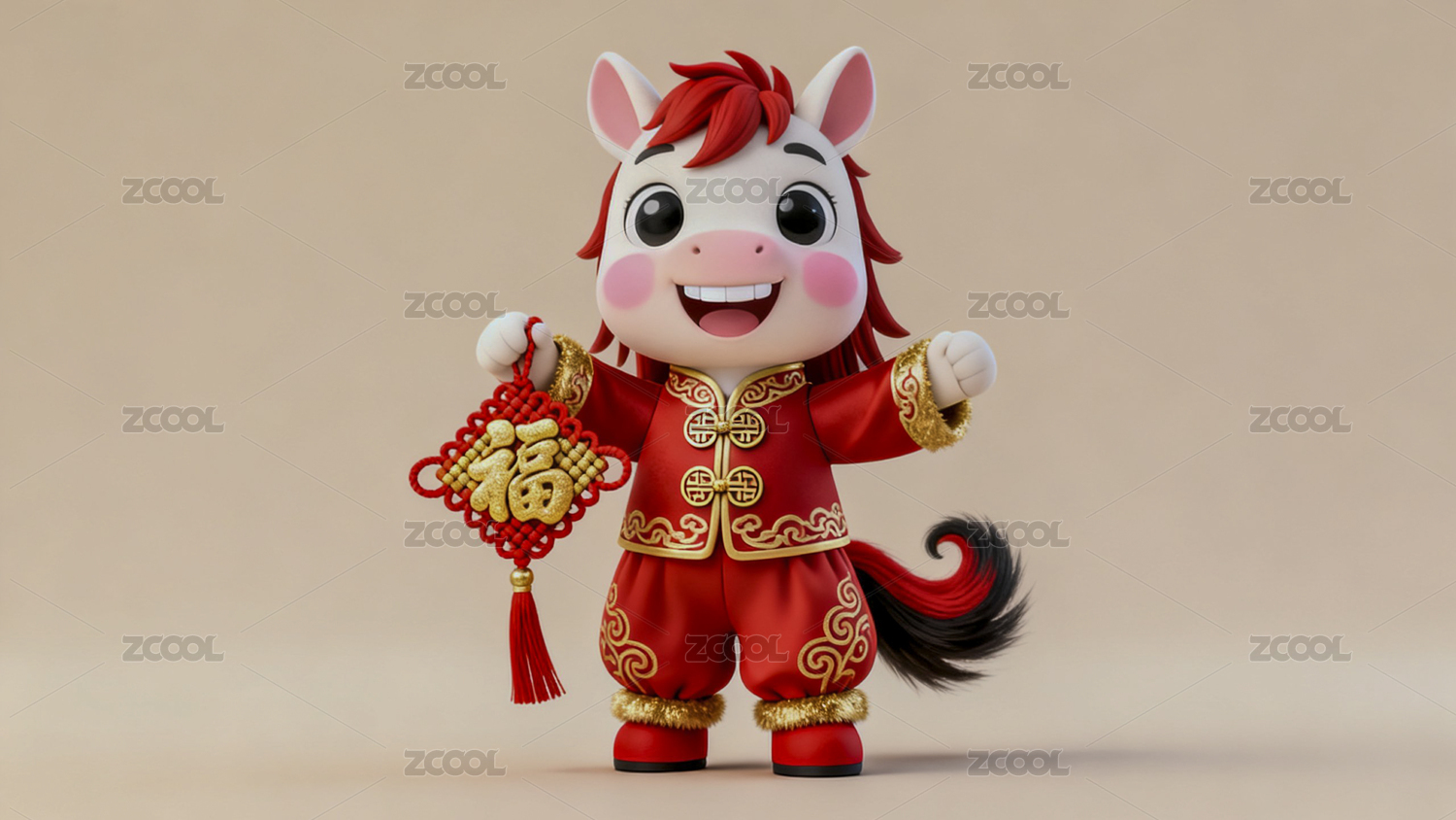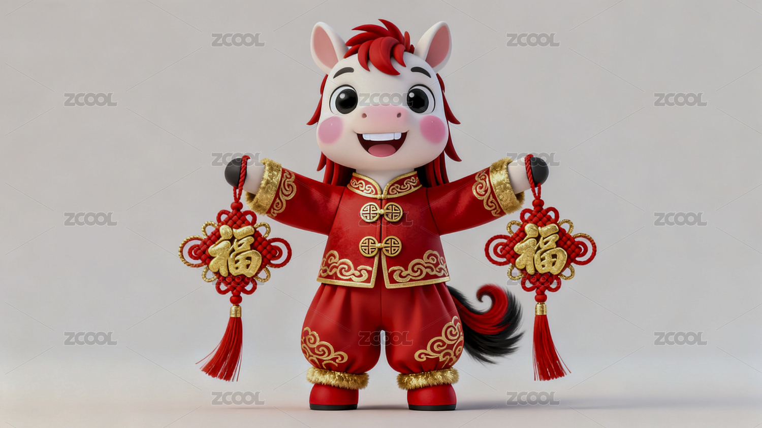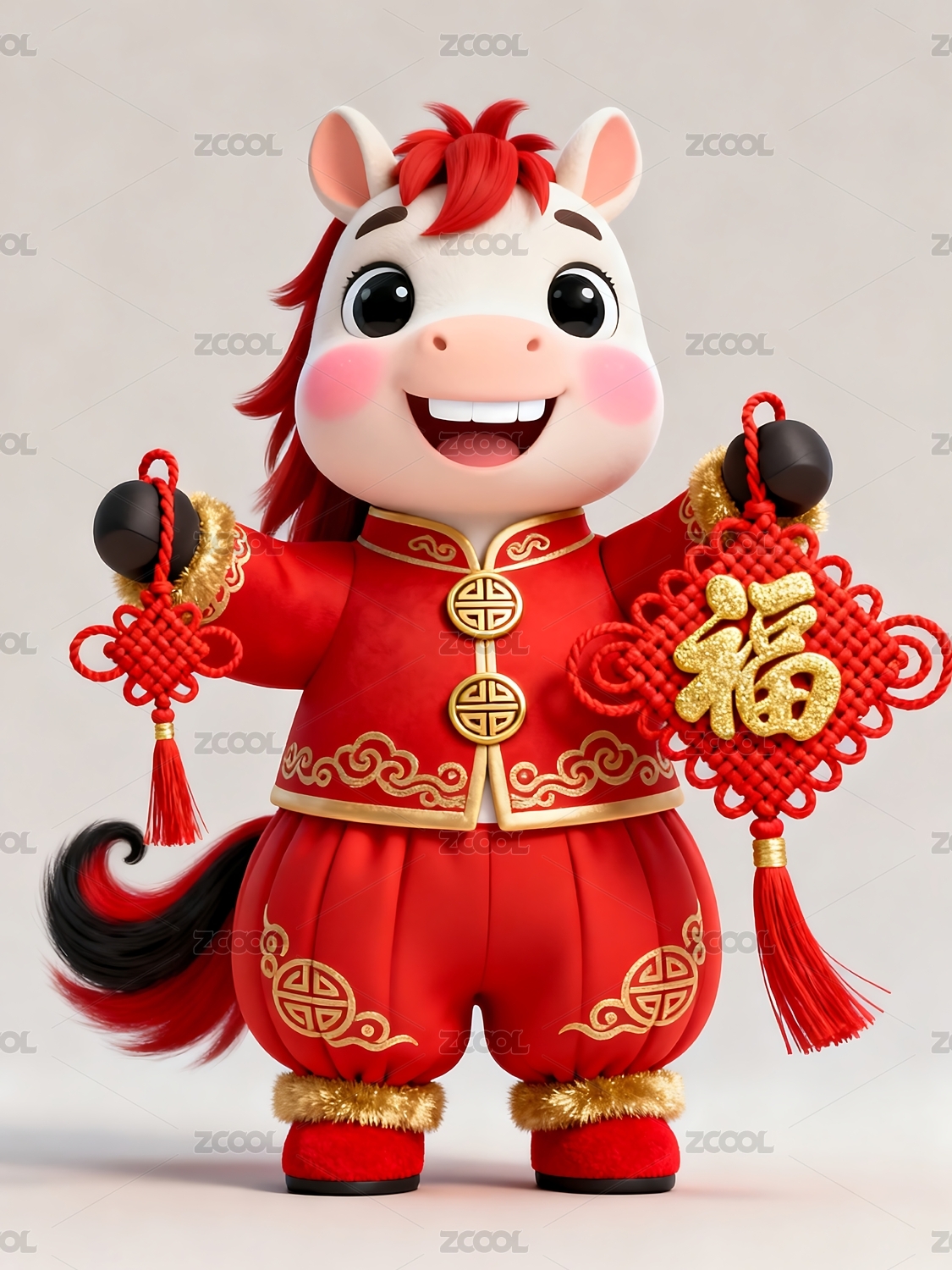 卡通,马,福字,中国结,红色,喜庆,新年,春节,马年,传统