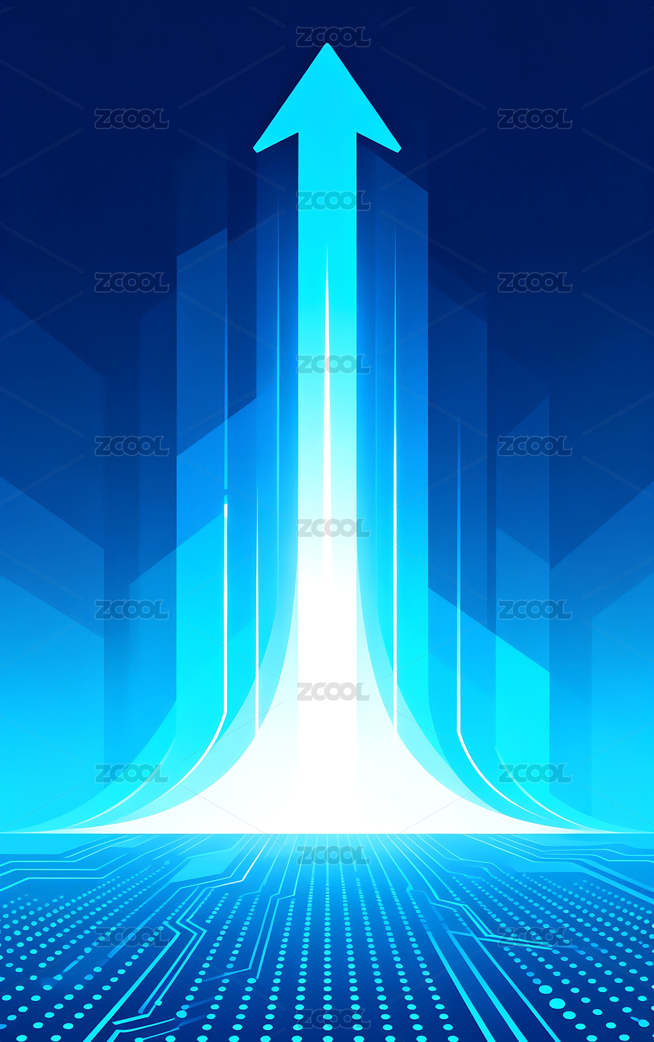 蓝绿发光箭头插画